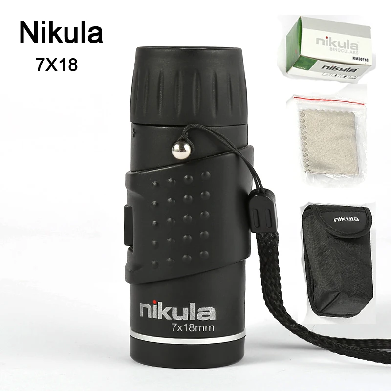 Características: Condición: NIKULA ideal para cazar, viajar, acampar, hacer senderismo, ver partidos, pescar, jugar al golf, etc. Marca: Nikula Modelo: 7x18 Diámetro de la lente del Objetivo: 18mm Campo de visión: 147M/1000m Aumento: 7X potencia Diámetro de la pupila de salida: 2,6mm Distancia de la pupila de salida: 10mm Se puede medir la distancia: 200m/200 yardas Ideal para necesidades de visión de larga distancia Regalo perfecto o artículo de decoración del hogar para todas las edades