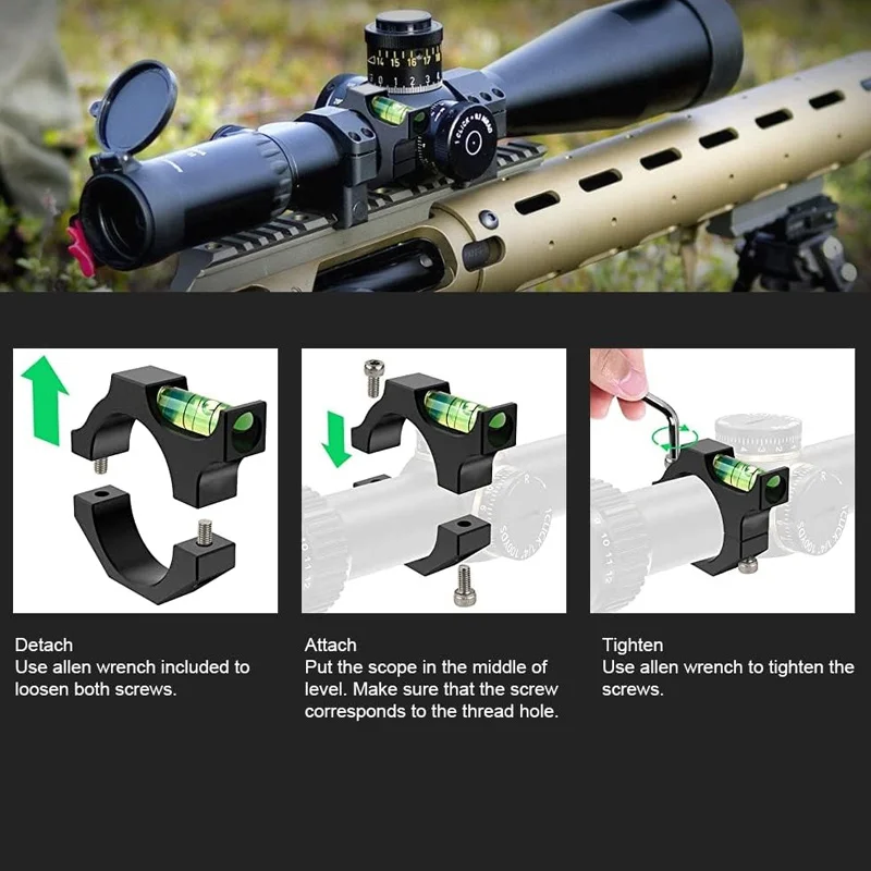 2.Fit for Scope with 30mm Diameter. Easy-to-see offset level helps you make immediate corrections without taking your eyes off the target.