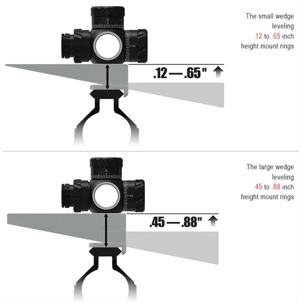 Tenga en cuenta: algunos soportes de visor de una sola pieza como los fabricados por Bobro pueden no tener suficiente espacio, así que asegúrese de verificar con su visor y soporte específicos.El nivelador requiere una superficie plana directamente debajo del grupo de torretas para funcionar.