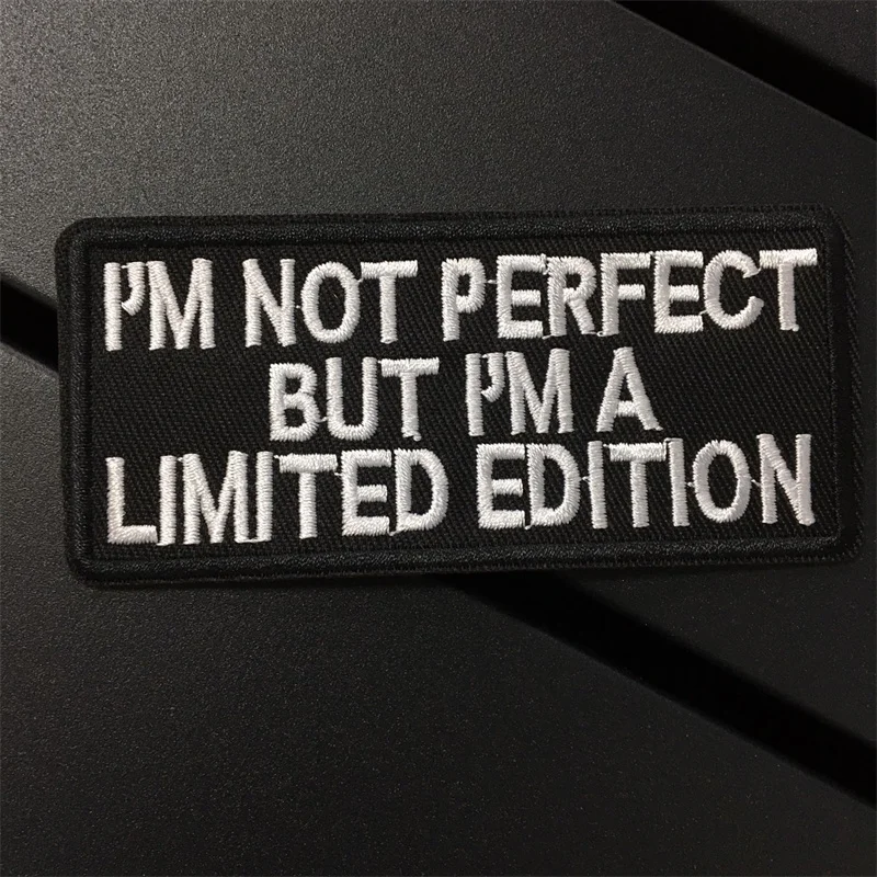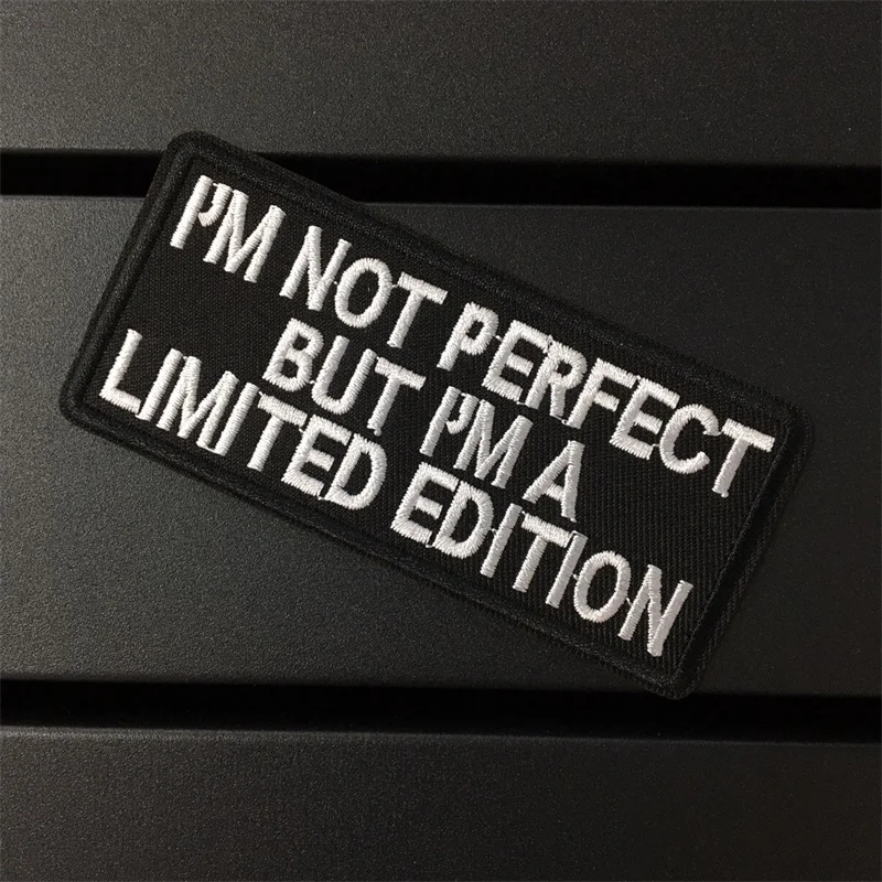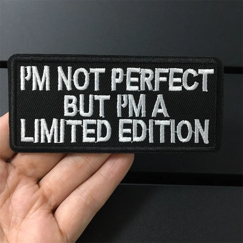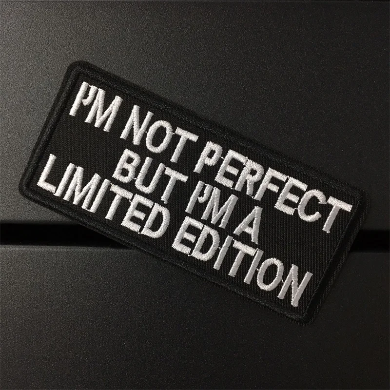 No es perfecto, pero... Tamaño: 10x4,7 cm, parches bordados, rayas para coser ropa, insignias, pegatinas para ropa, apliques