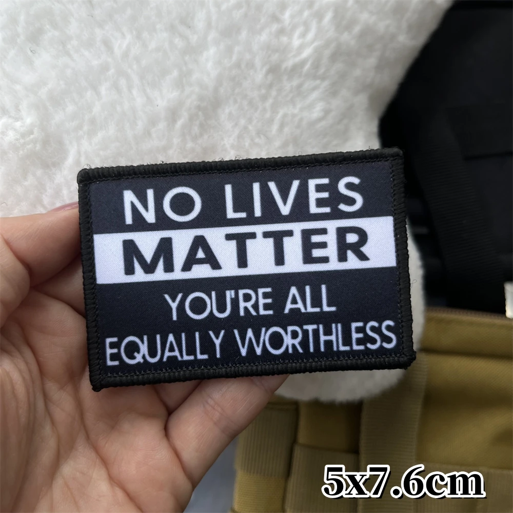 No Lives Matter, todos son igualmente inútiles parche divertido moral ejército parches tácticos insignia militar mochila impresión pegatina