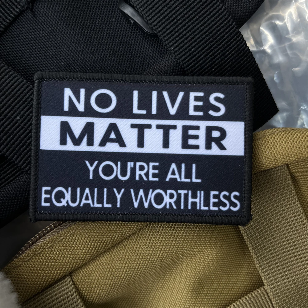 No Lives Matter, todos son igualmente inútiles parche divertido moral ejército parches tácticos insignia militar mochila impresión pegatina