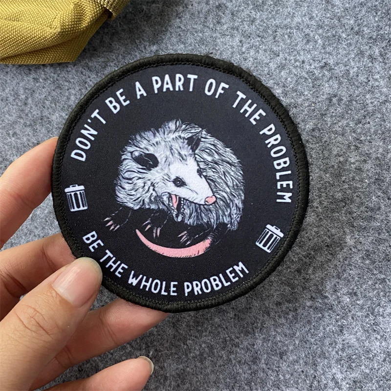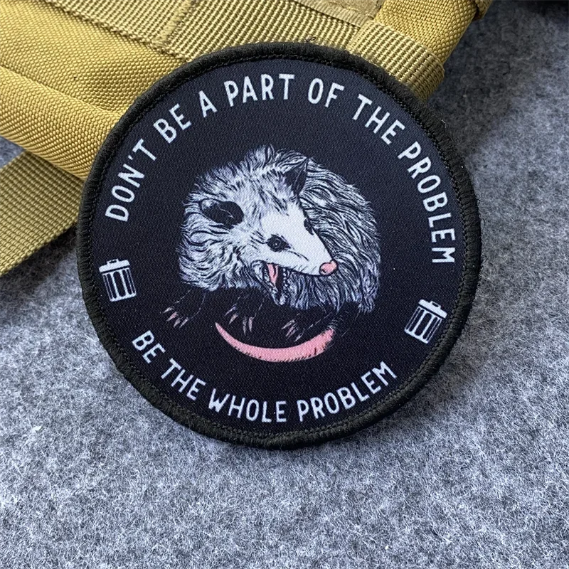 "No seas parte del problema, sé todo el problema" Parche de impresión ratón táctico moral insignia gancho y bucle mochila pegatina