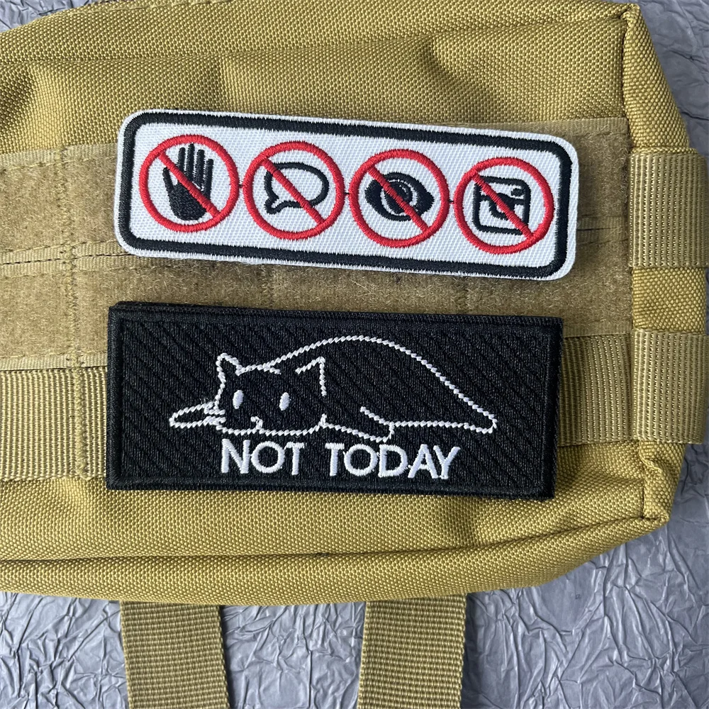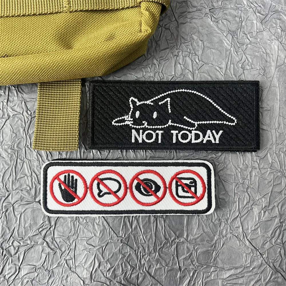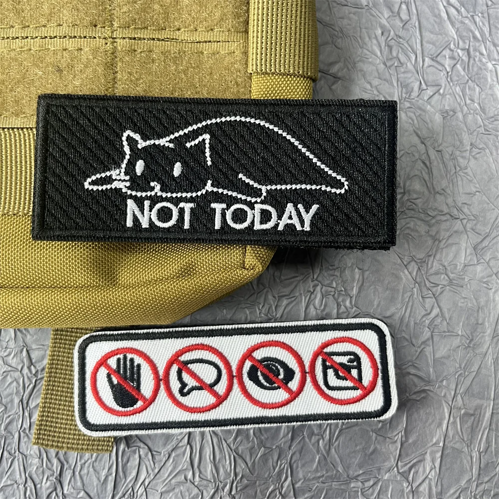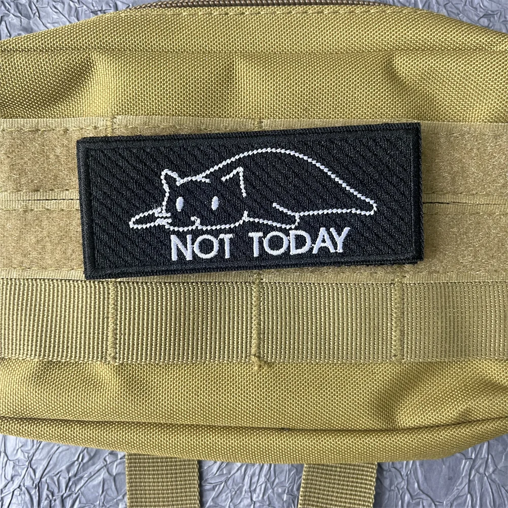 Parche bordado de gato NO HOY en la ropa, pegatina para mascotas, parches de gancho y bucle, mochila, emblema táctico de dibujos animados