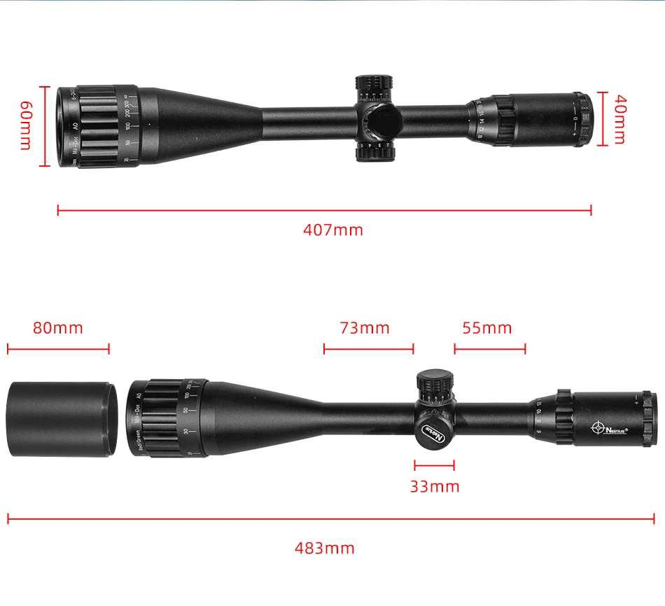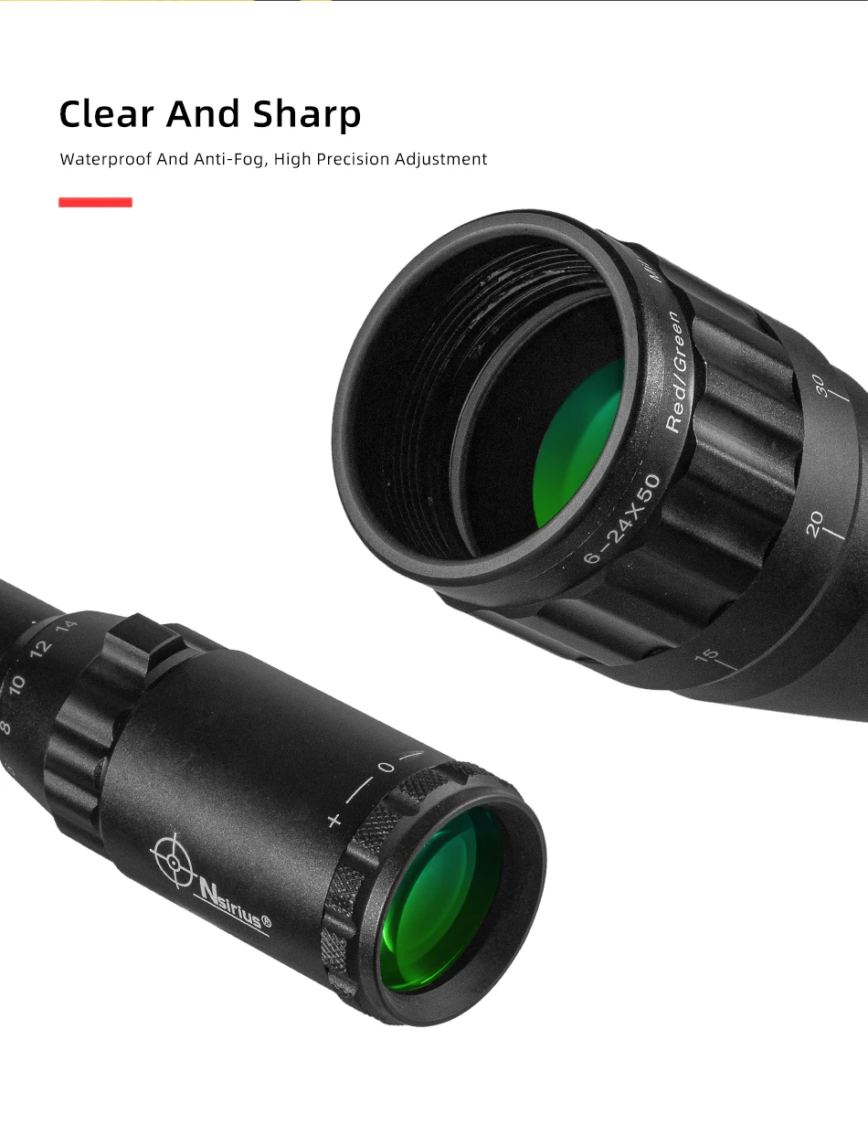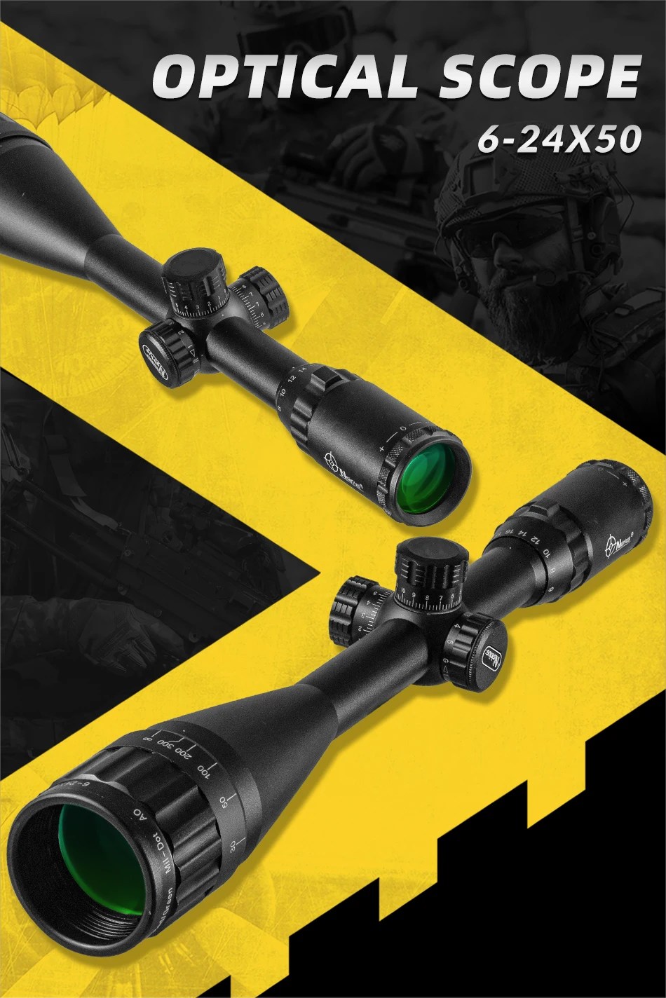 NSIRIUS 6-24x50AOE óptica rojo verde iluminado Mil Dot Rifle Scope precisión caza alcance Air Rifle Scope con cubierta montaje