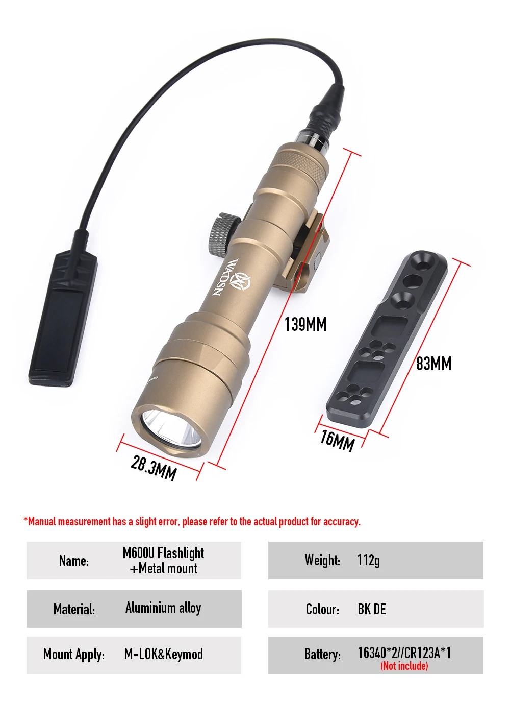 Nueva actualización de la tienda táctica WADSN M600U juego de linterna de caza 600 lúmenes M600u lámpara de exploración de arma con montaje de Metal Mlok Keymod