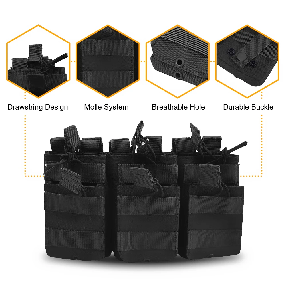 Bolsa táctica Molle Triple para revistas, bolsas Mag de doble capa abiertas, bolsa Universal con soporte para cartucho para M4 M14 M16 AK AR