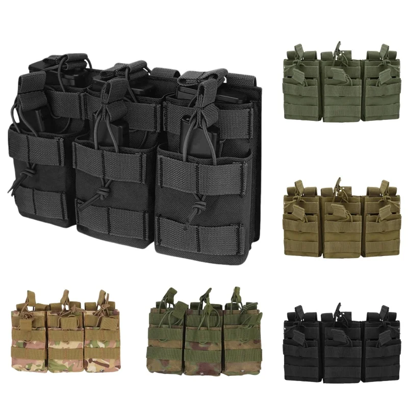 Bolsa táctica Molle Triple para revistas, bolsas Mag de doble capa abiertas, bolsa Universal con soporte para cartucho para M4 M14 M16 AK AR