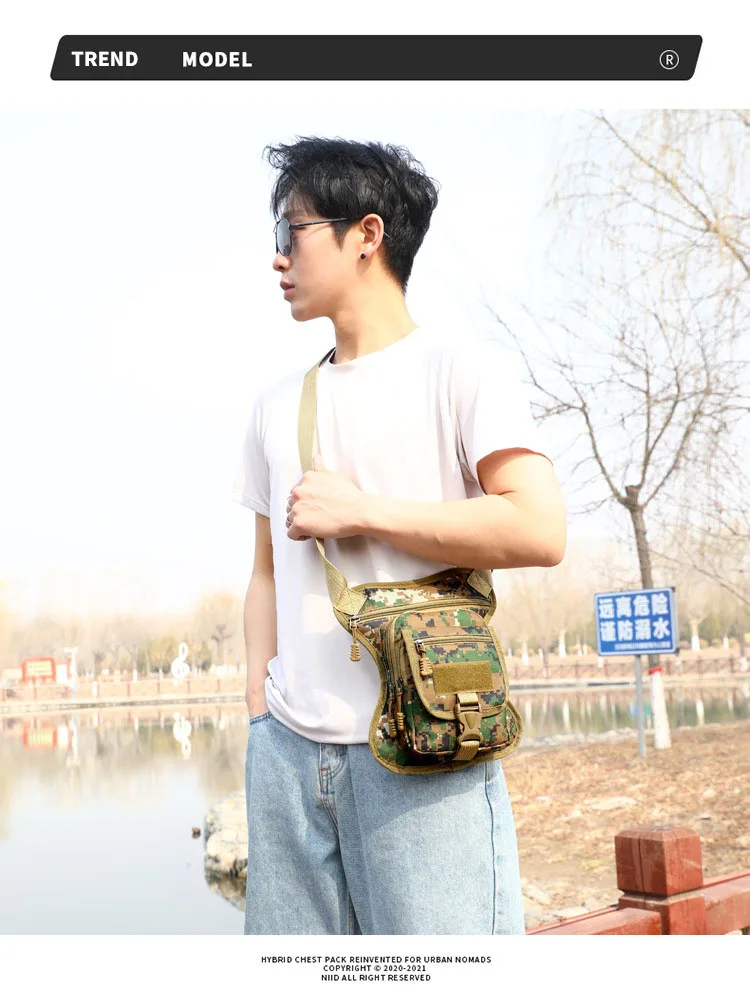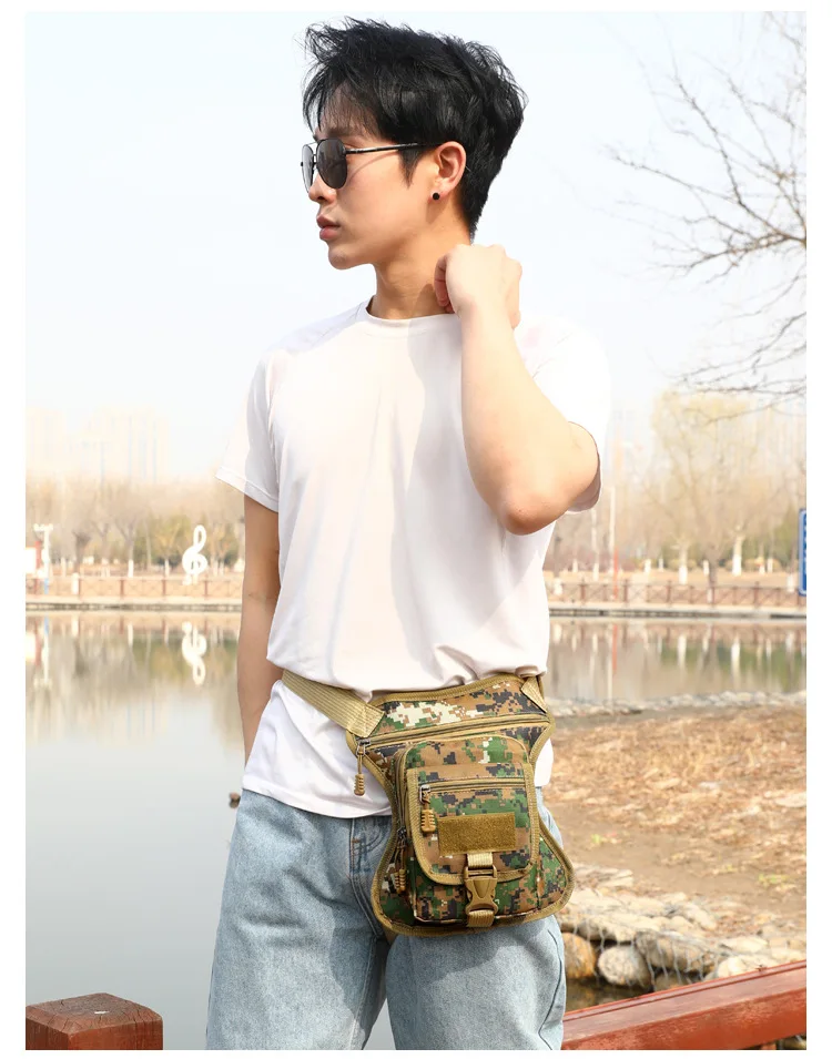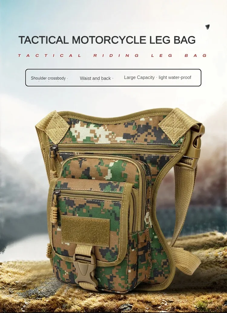 Nueva bolsa de pierna para motocicleta, riñonera impermeable de camuflaje, multifuncional para viajes al aire libre, senderismo, bolsa de pierna portátil para motocicleta