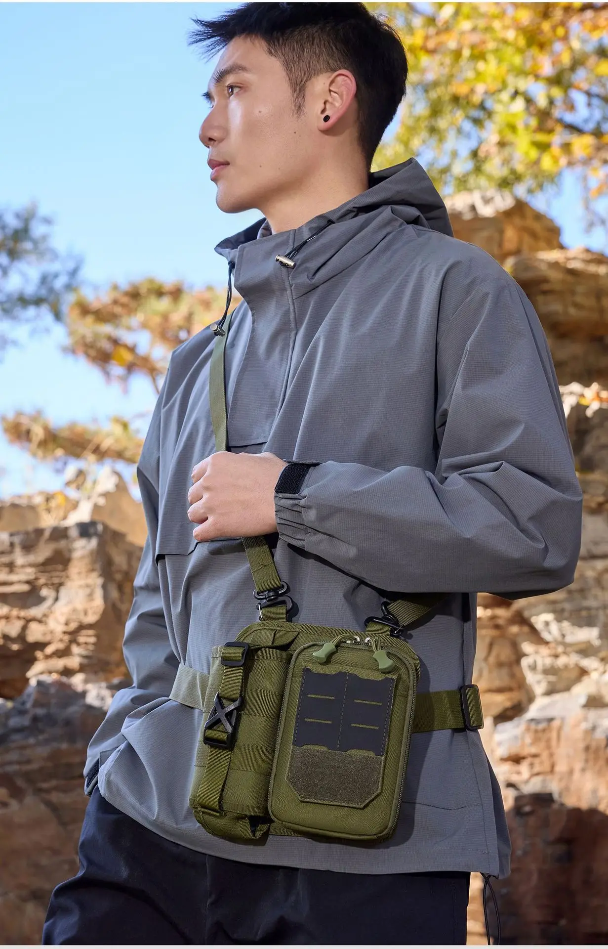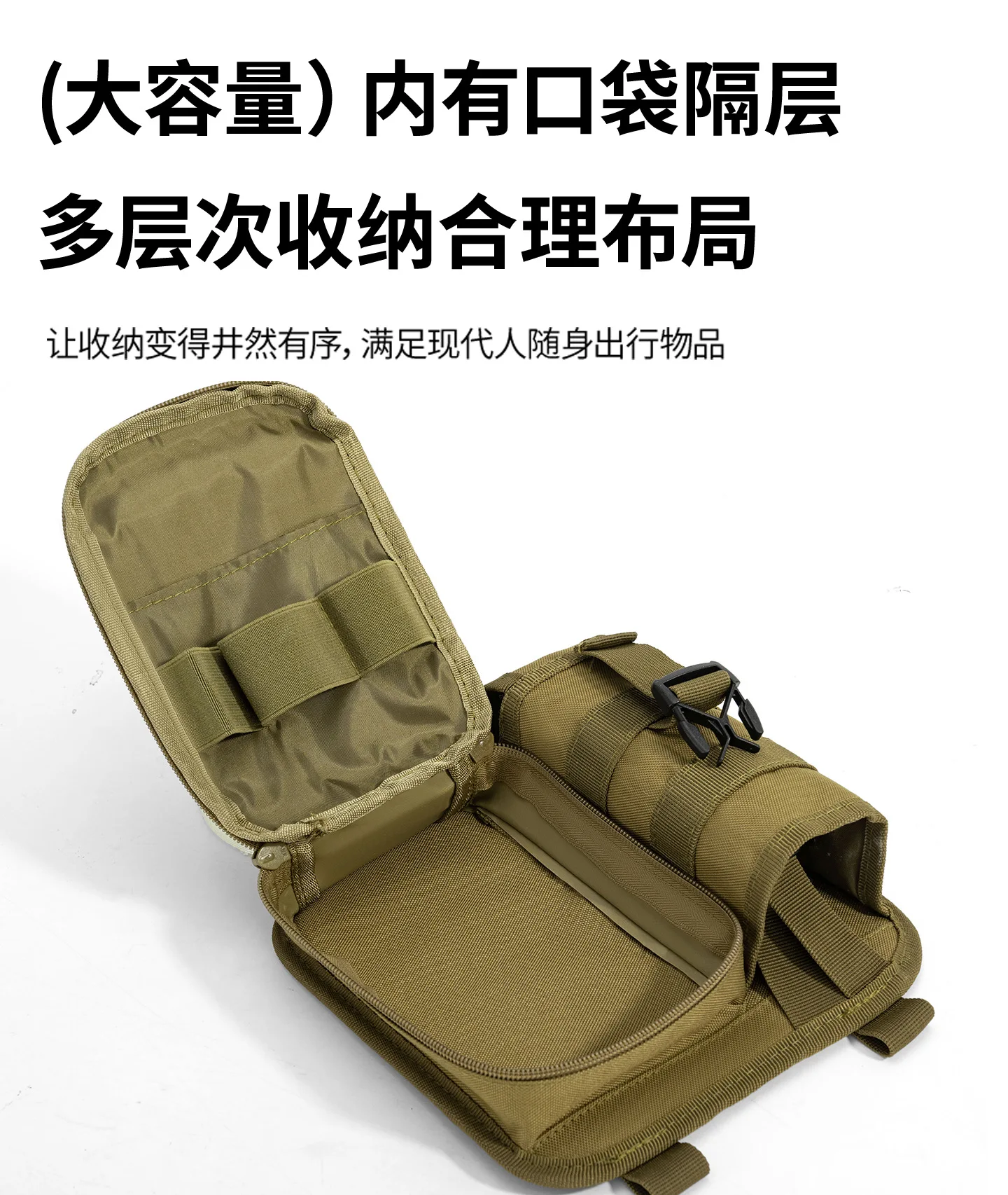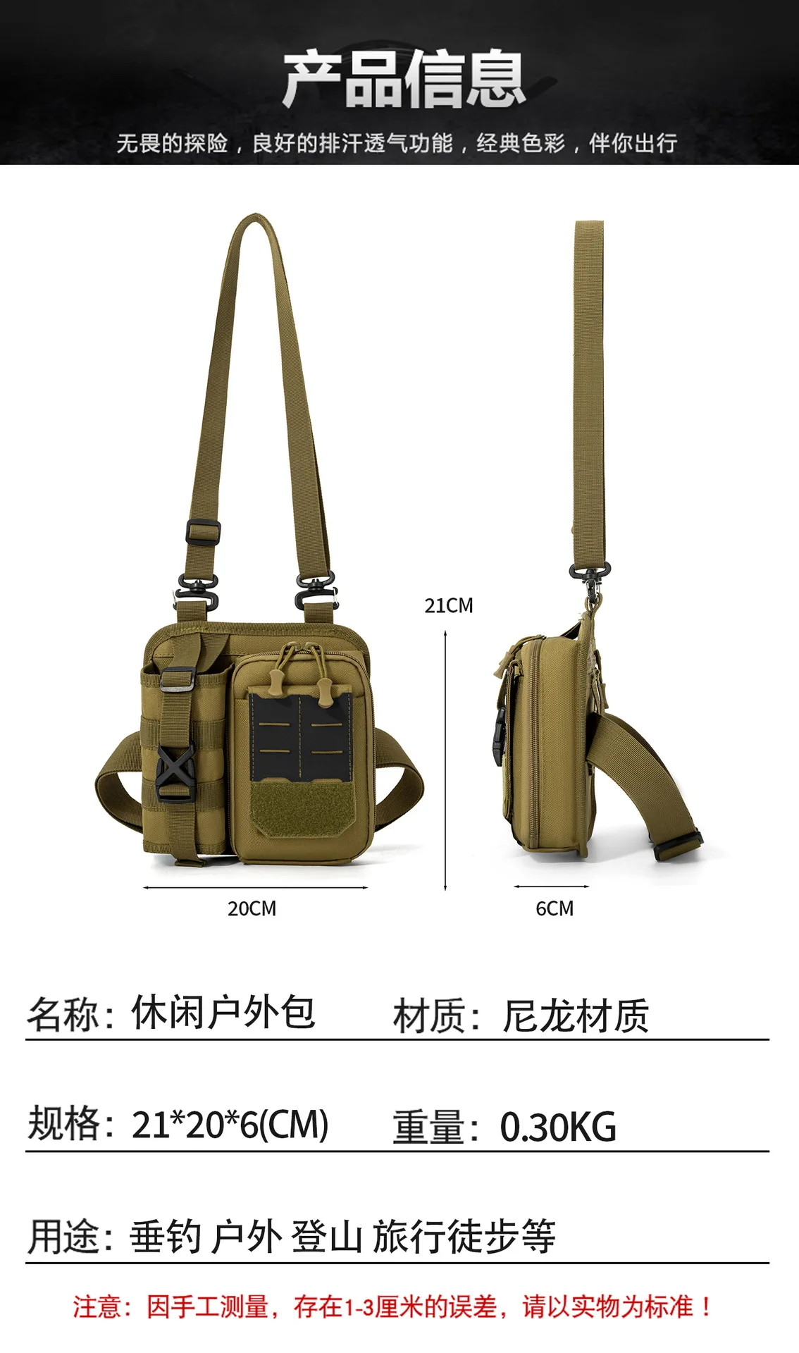 Esta bolsa táctica está hecha de material de nailon, pesa solo 0,3 kg y mide 21 × 20 × 6 cm.Presenta un diseño práctico y adaptabilidad multiescenario: