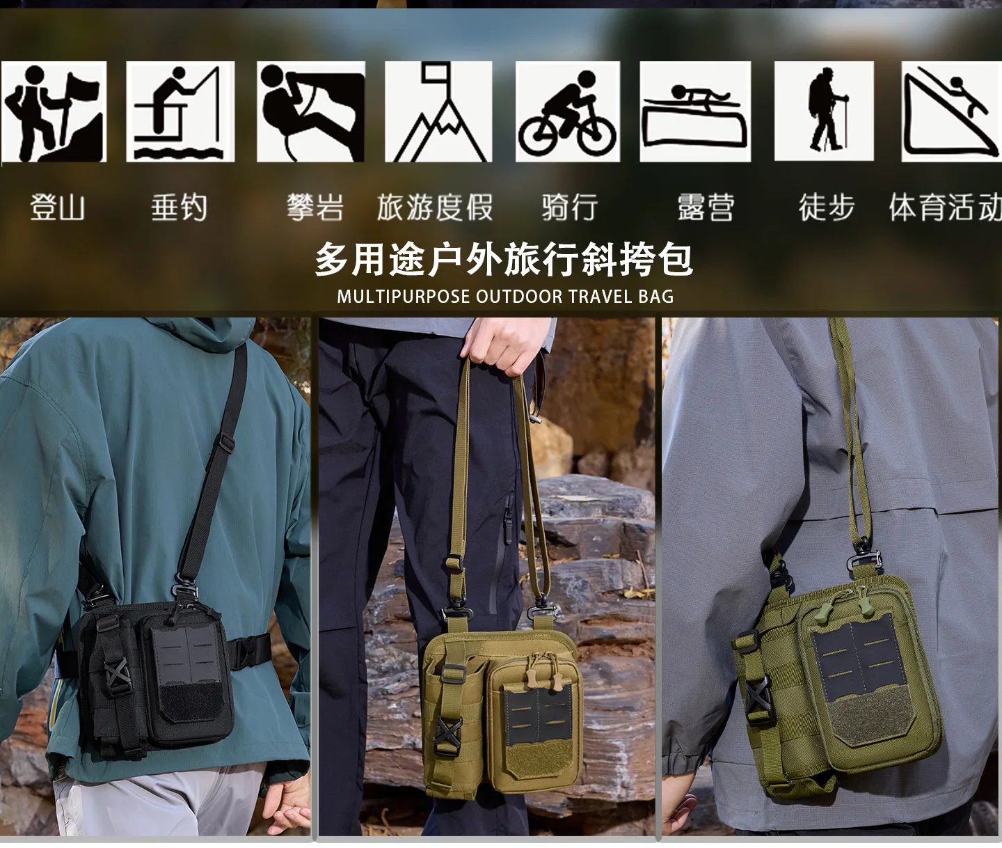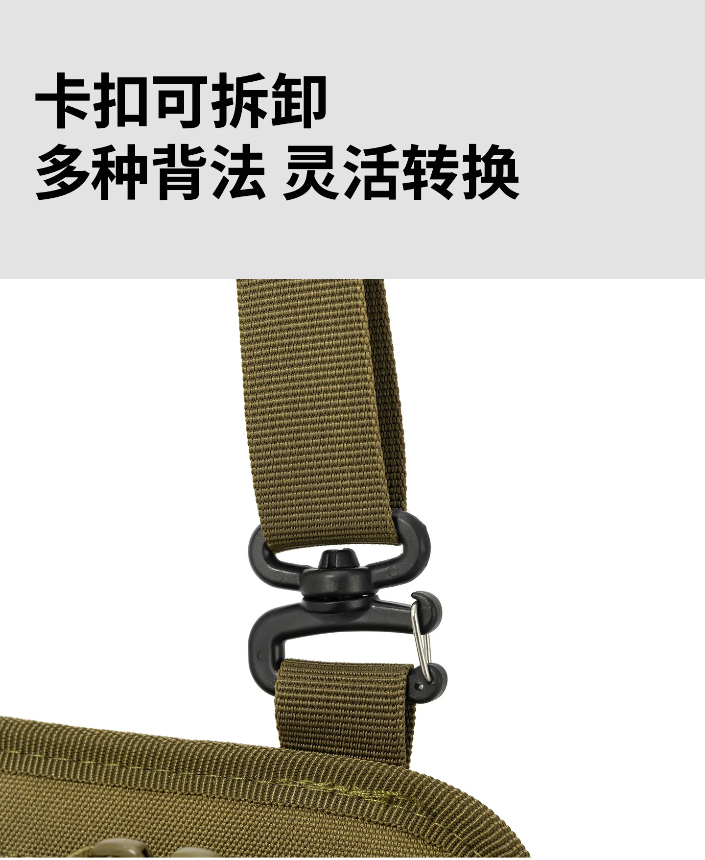 Cambio flexible de múltiples cinturones: el diseño de cierre a presión permite varios métodos de transporte, como cabestrillo de un solo hombro, uso de cintura, etc., adecuado para actividades como senderismo, pesca, ciclismo y desplazamientos diarios;