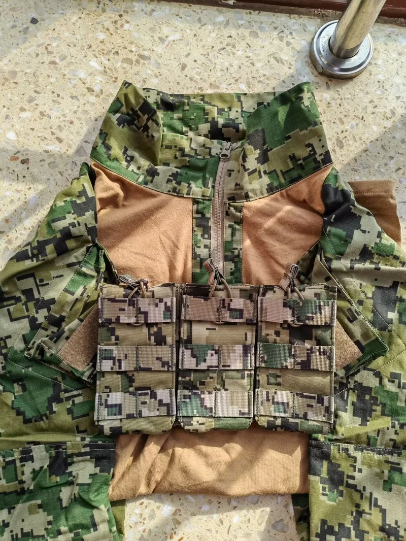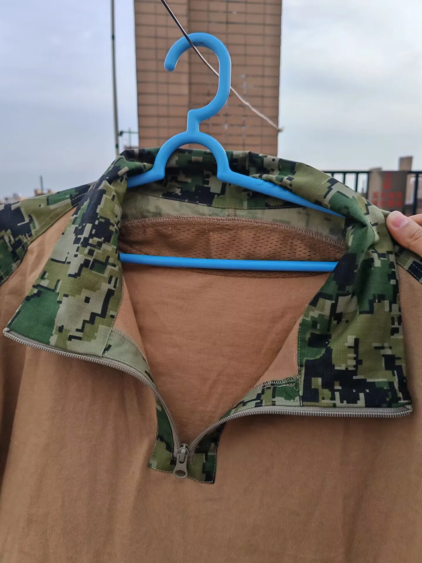 Note: The torso (brown) is made of pure cotton fabric, while the sleeves and collar are made of nylon cotton fabric