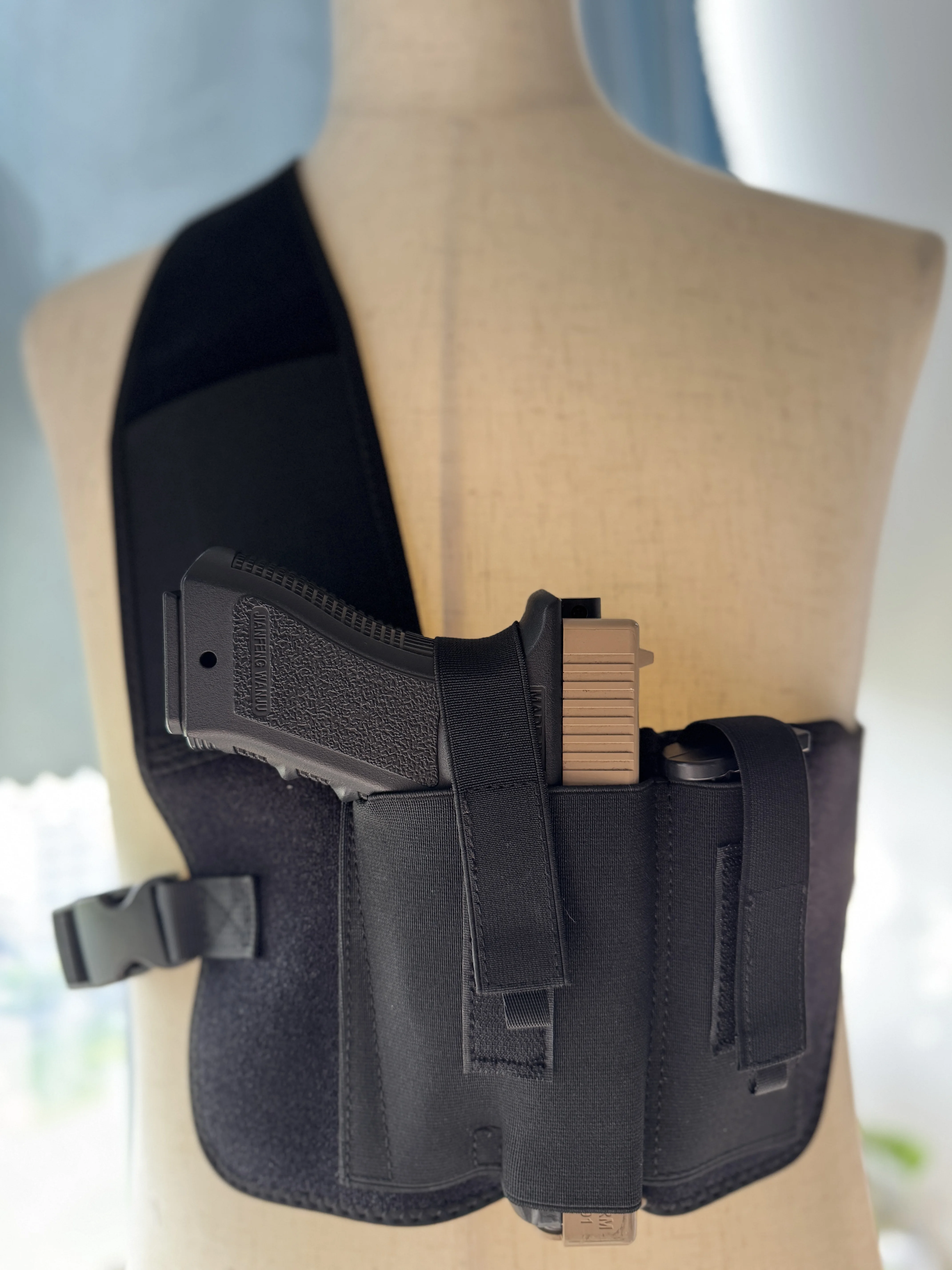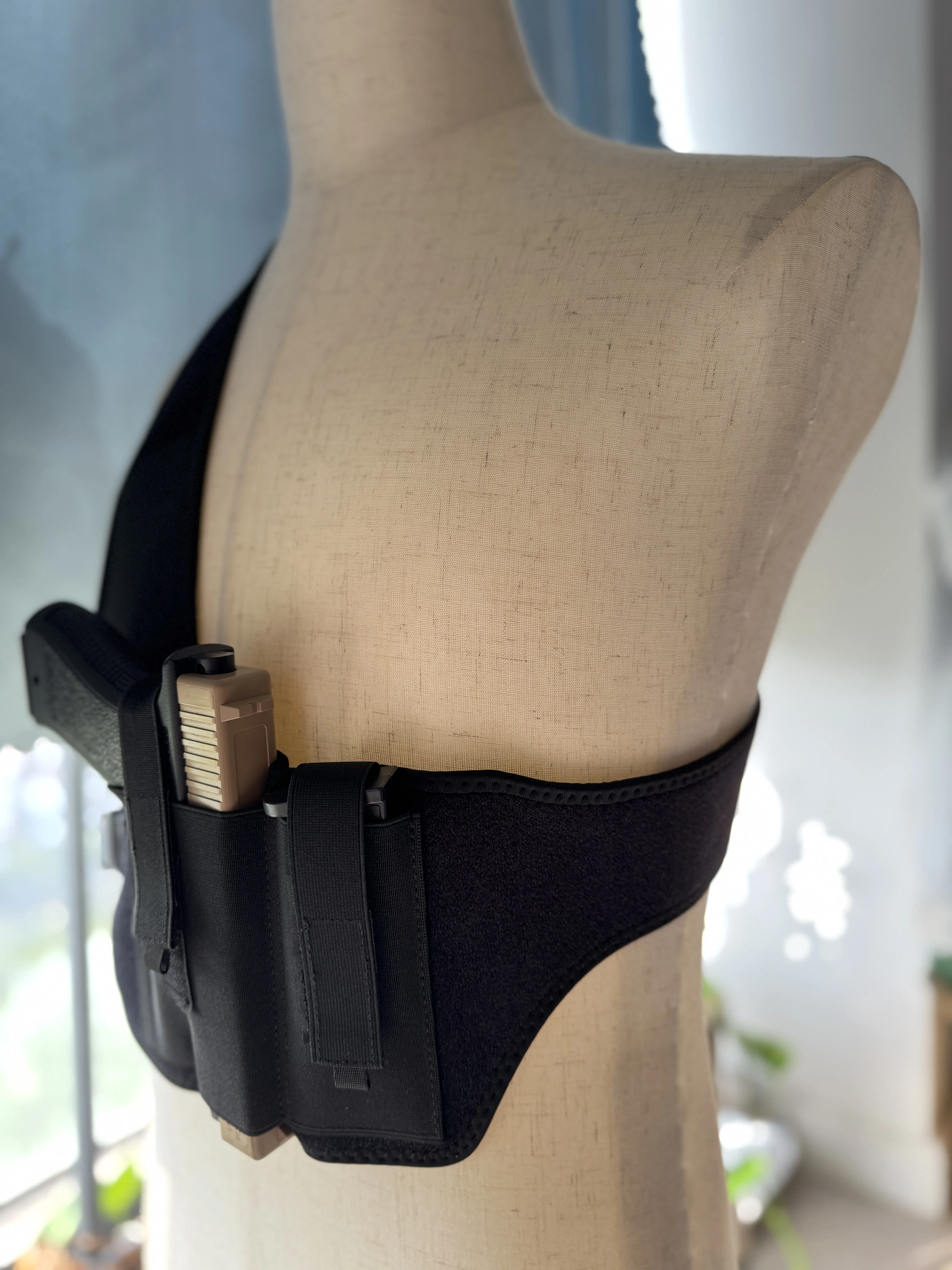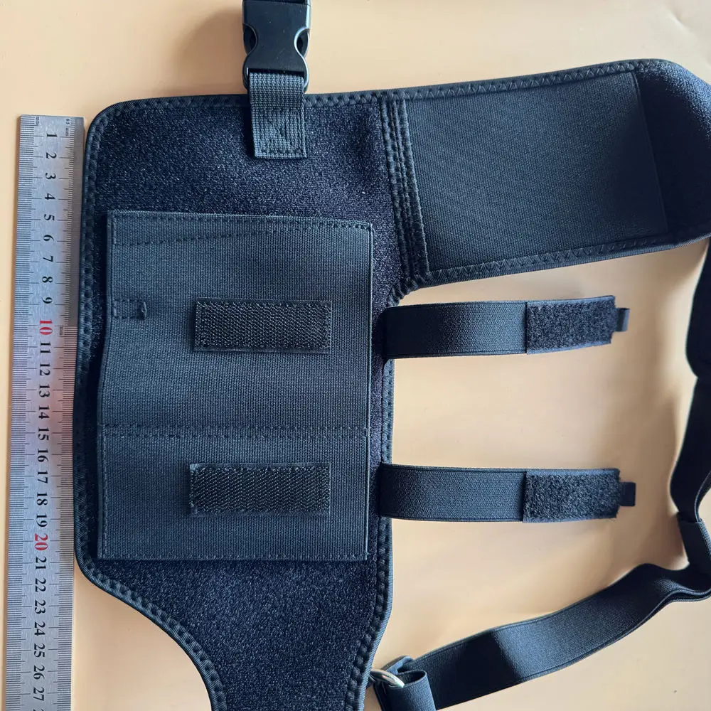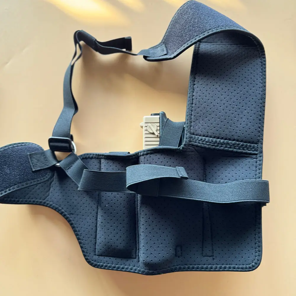 2. La funda de transporte oculta está hecha de neopreno cómodo, es ligera y transpirable.El diseño más amplio permite transportar bien la pistola, la cabeza de la pistola no quedará expuesto, lo cual es más seguro y la correa mantiene las pistolas cerca del cuerpo para ocultar bien.Puedes usarlo debajo de una chaqueta o chaleco de cuero.