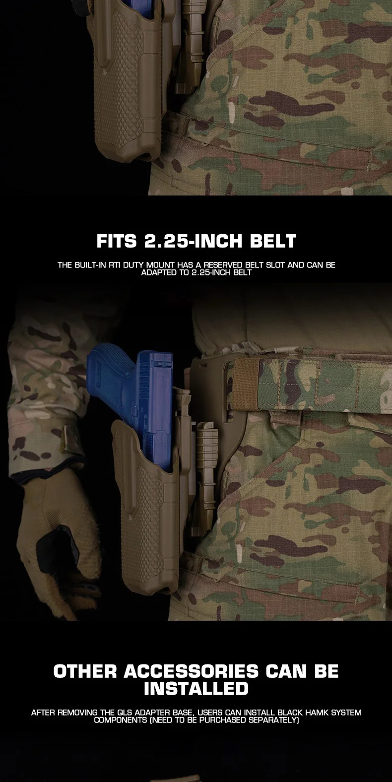 -La placa de presión inferior incluida tiene una ranura para cinturón prediseñada para un cinturón de 2,25 pulgadas.