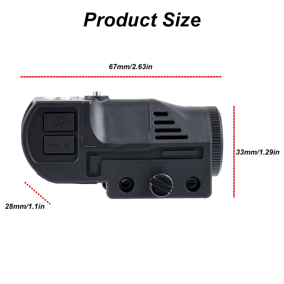 Interruptores duales: el interruptor de botón enciende el haz continuo de la linterna y/y la-ser visor.El interruptor remoto del cable incluido convierte momentáneamente la linterna o/y la mira de la serie.