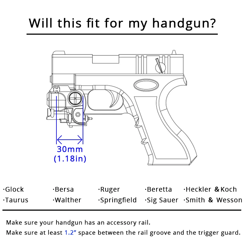- Compacto y liviano, ancho y largo perfecto para pistolas compactas, lo que lo hace fácilmente ocultable.