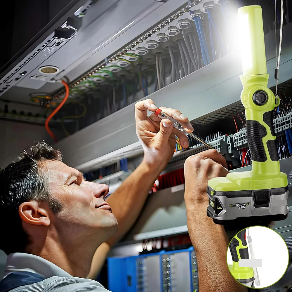 • 【LUZ BRILLANTE Y 3 AJUSTES DE MODO】 Luz YEX-BUR de 18 V que proporciona hasta 1000 lúmenes de flujo luminoso, lo que garantiza que pueda disfrutar de una iluminación brillante en cualquier entorno de trabajo, lo que le permite ver fácilmente cada detalle.Modo 1 - 50% de brillo blanco (500 LM), Modo 2 - 100% de brillo blanco (1000 LM), Modo 3 - 100% luz blanca intermitente (1000 LM).Mantenga presionado el interruptor para apagar las luces de trabajo inalámbricas en cualquier modo.
