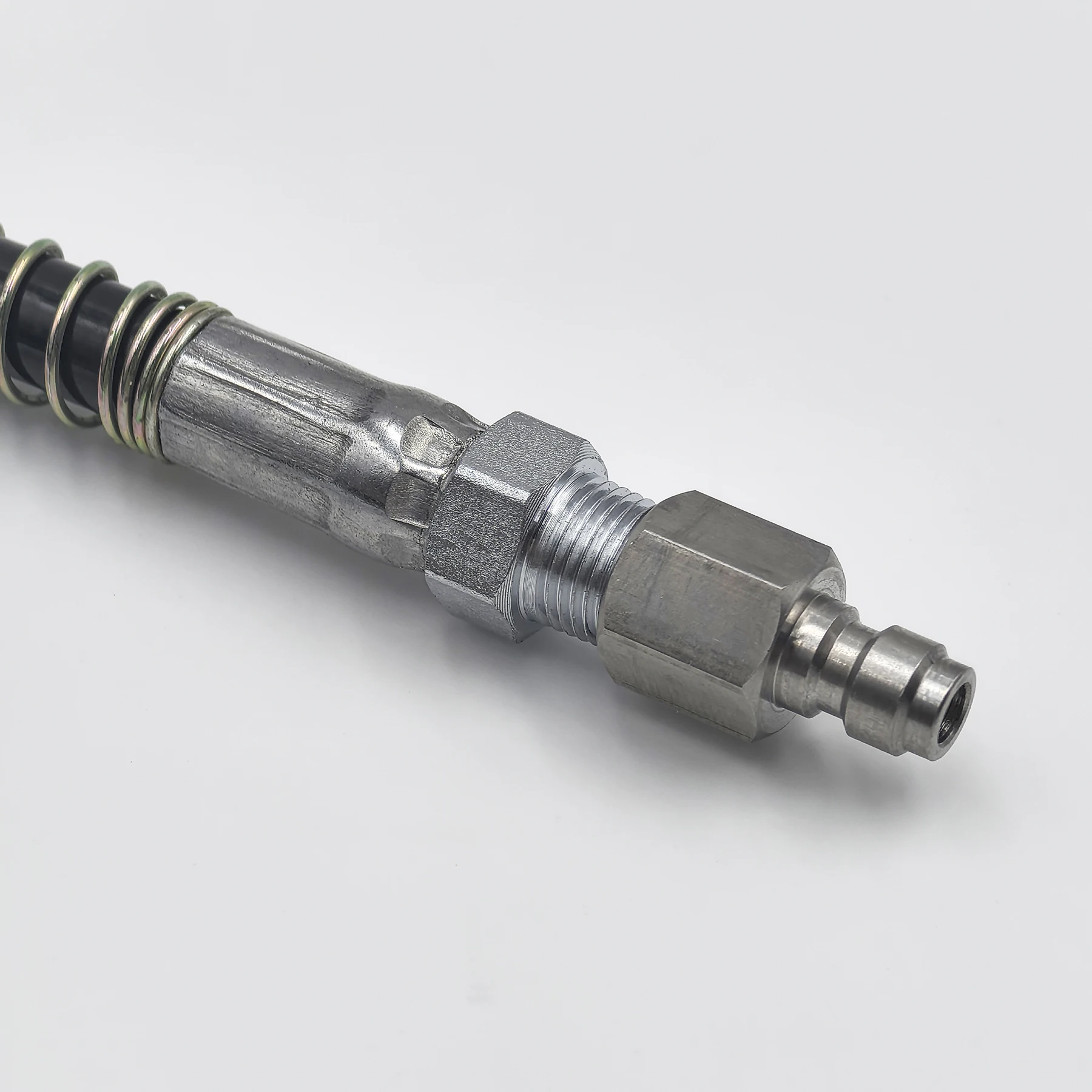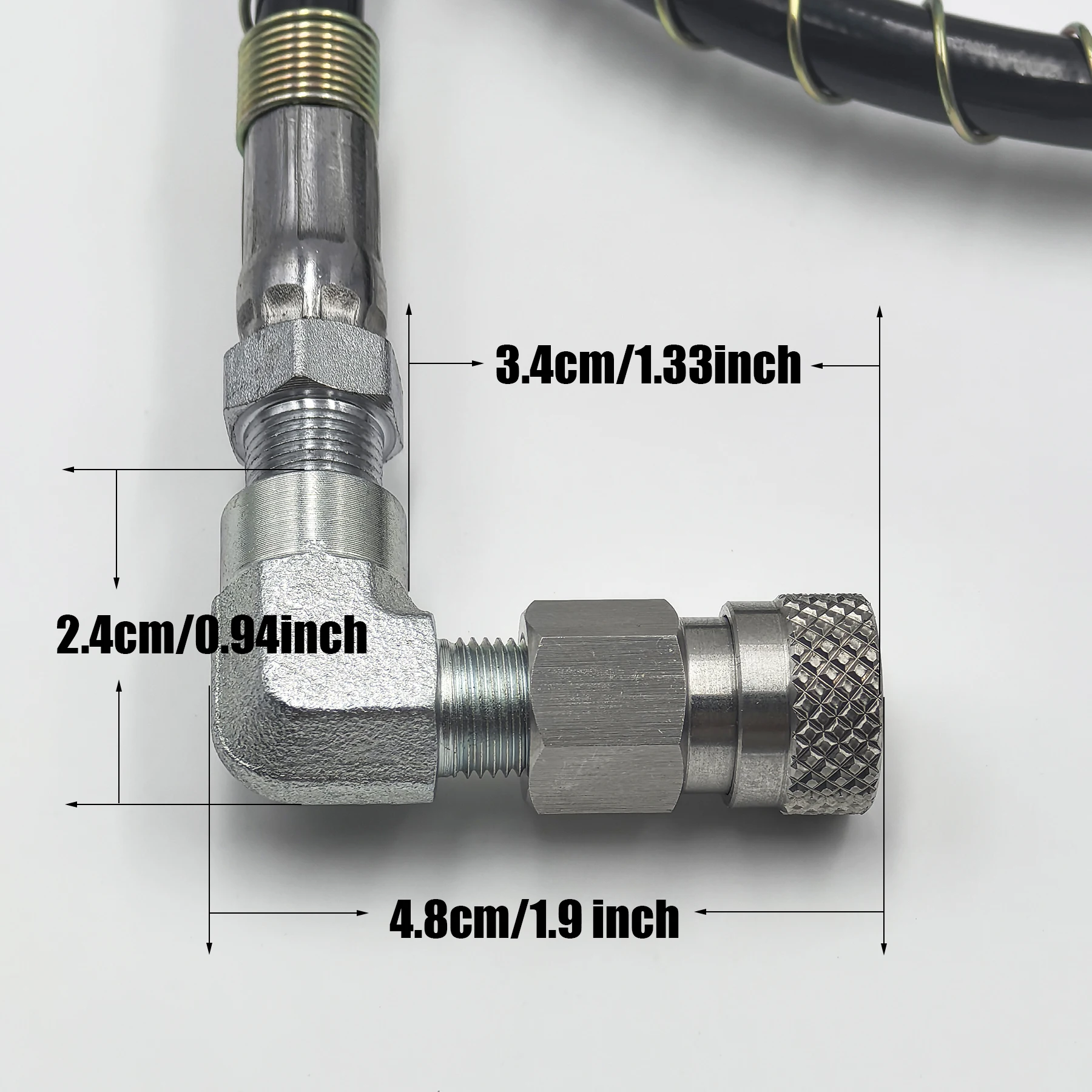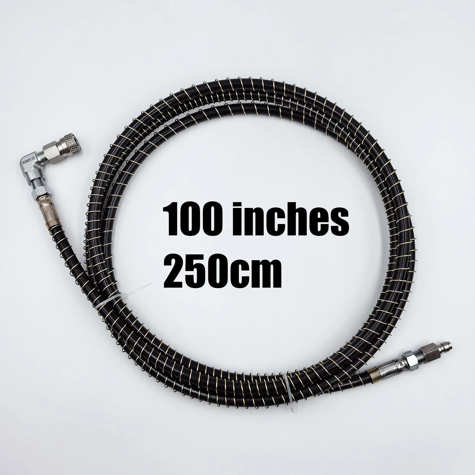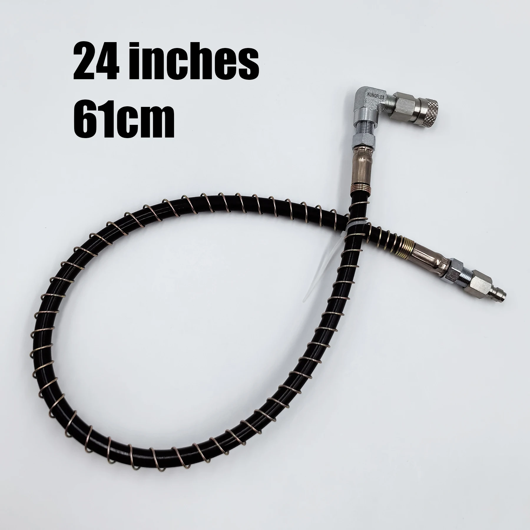 Los extremos son de acero inoxidable estándar de 8 mm, macho y hembra de desconexión rápida, mejor que el cobre, no se preocupe más por la caída del revestimiento y una presión tolerable más alta.