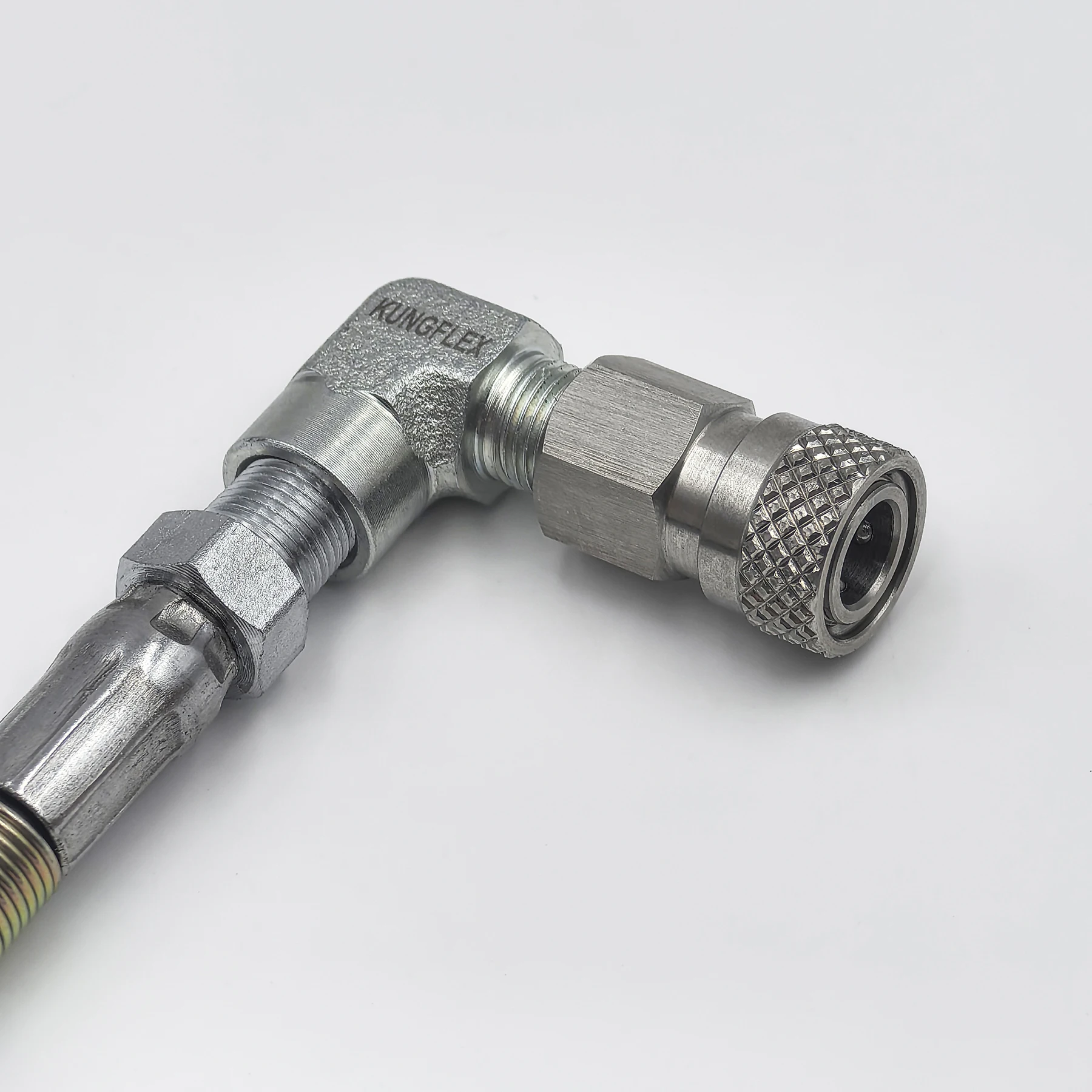 Los extremos son de acero inoxidable estándar de 8 mm, macho y hembra de desconexión rápida, mejor que el cobre, no se preocupe más por la caída del revestimiento y una presión tolerable más alta.