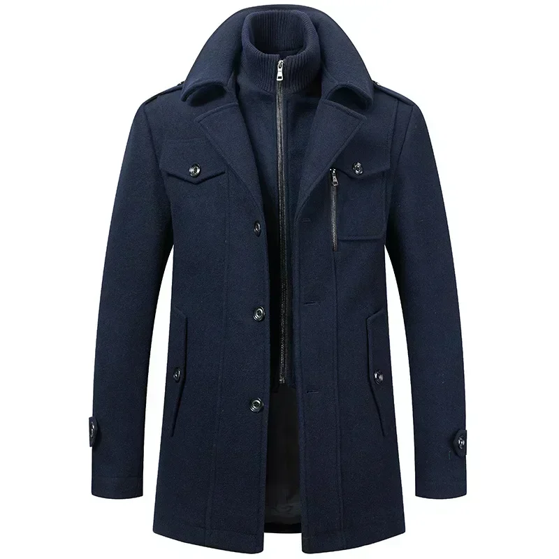 Nueva moda de invierno para hombre, cárdigans ajustados de manga larga, abrigo de mezcla, chaqueta, traje, abrigos largos de lana sólidos para hombre