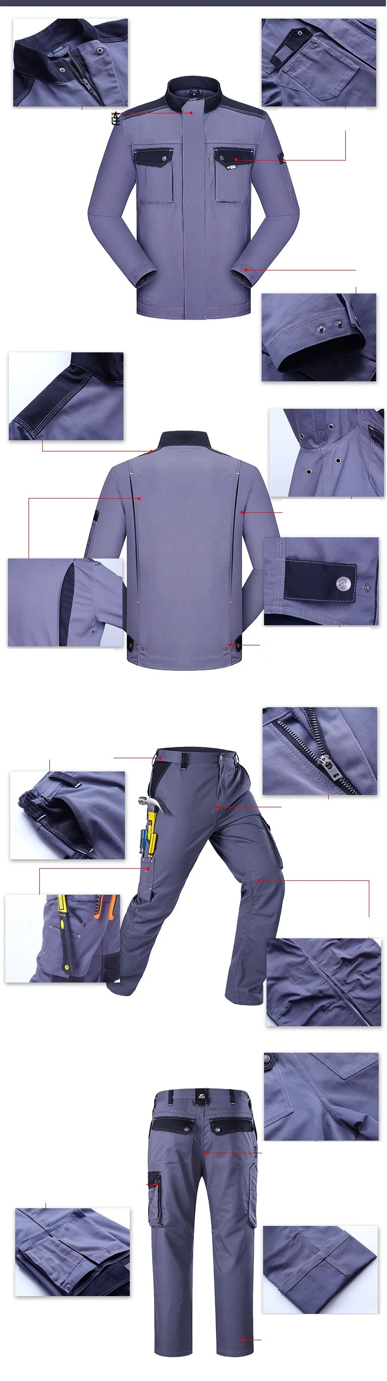 Nueva ropa de trabajo de soldadura de primavera para hombres y mujeres, chaqueta reflectante + pantalones, máquina resistente al desgaste, officina de reparación de automóviles, monos, uniformes, nueva ropa de trabajo duradera, chaqueta reflectante para hombres y mujeres, chaqueta reflectante + pantalones, máquina resistente al desgaste, soldador de reparación automática, mono de taller, uniformeMaterial: mezcla de algodón