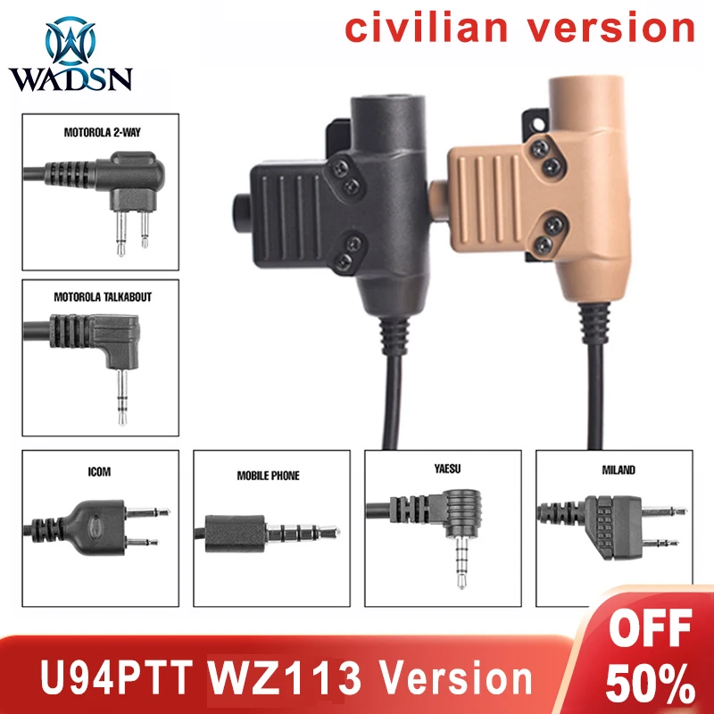 Nueva versión Civil U94 PTT táctico para auriculares Wadsn COMTA Earmor copia auriculares caza al aire libre PTT Fit Baofeng Kenwood Plug