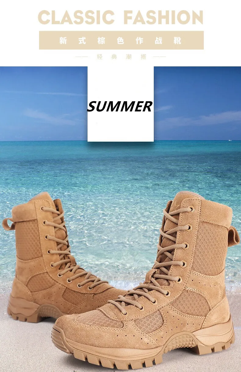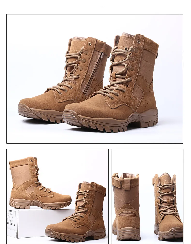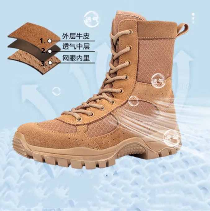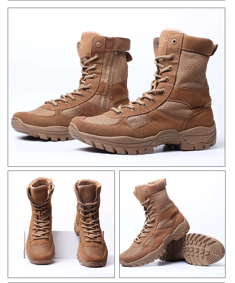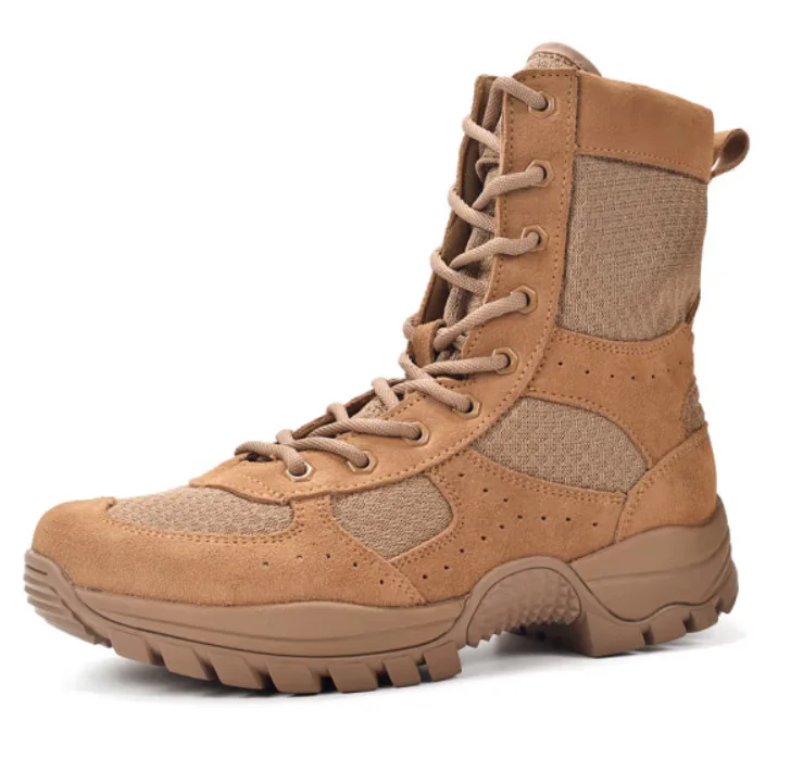 Nuevas botas de combate marrones con cremallera lateral resistente al desgaste entrenamiento verano ultraligero zapatos de senderismo al aire libre escalada táctica en el desierto