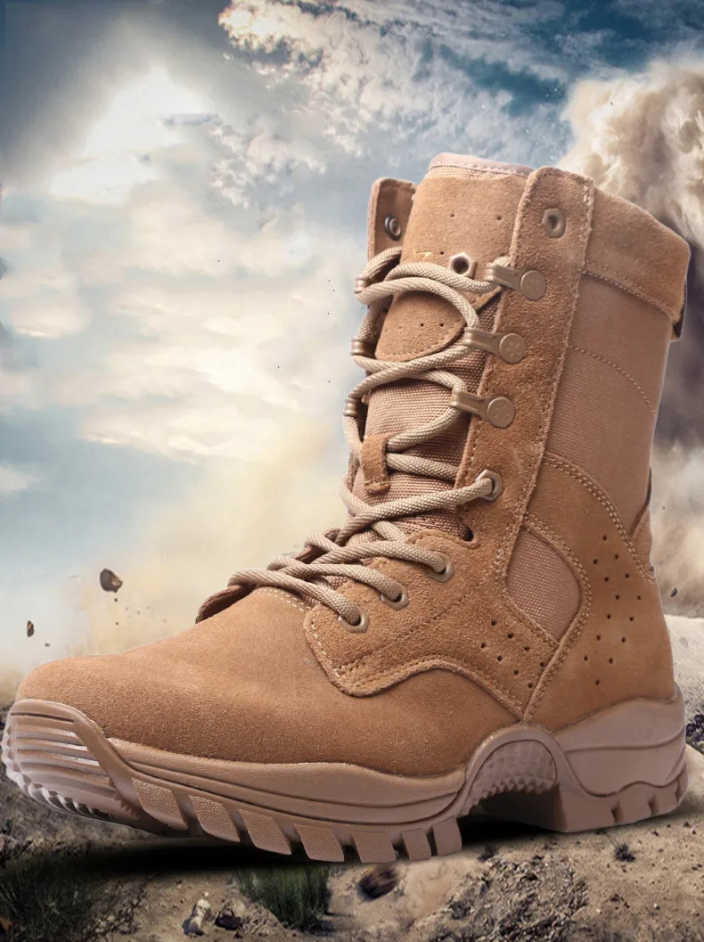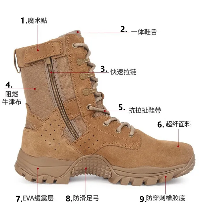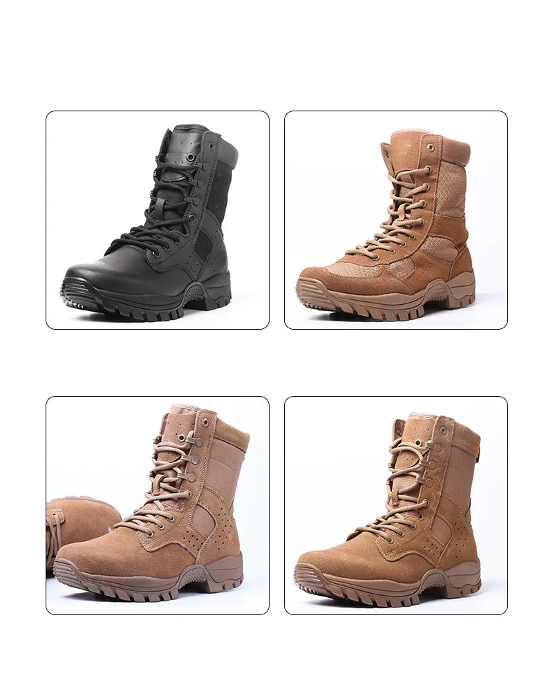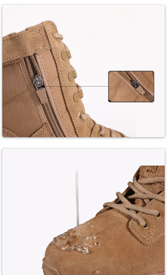 Nuevas botas de combate marrones con cremallera lateral resistente al desgaste entrenamiento verano ultraligero zapatos de senderismo al aire libre escalada táctica en el desierto