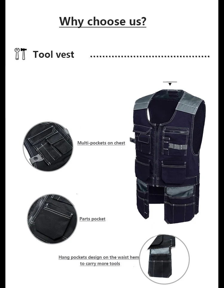 Nuevo 2025 alta calidad hombres mujer ropa de trabajo al aire libre chalecos de trabajo para hombres herramienta multifunción chalecos con múltiples bolsillos