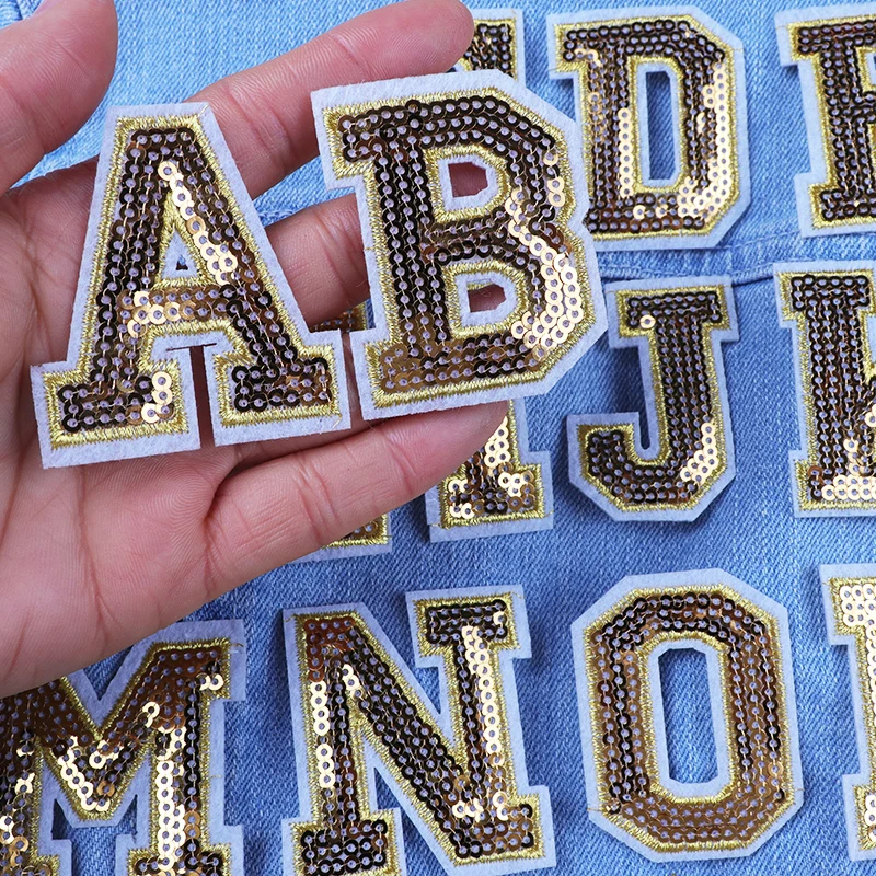 Nuevo 26 unids/lote moda A-Z lentejuelas letra en inglés bordado parche ortografía libre planchar sobre parches para ropa sombrero zapato coser DIY