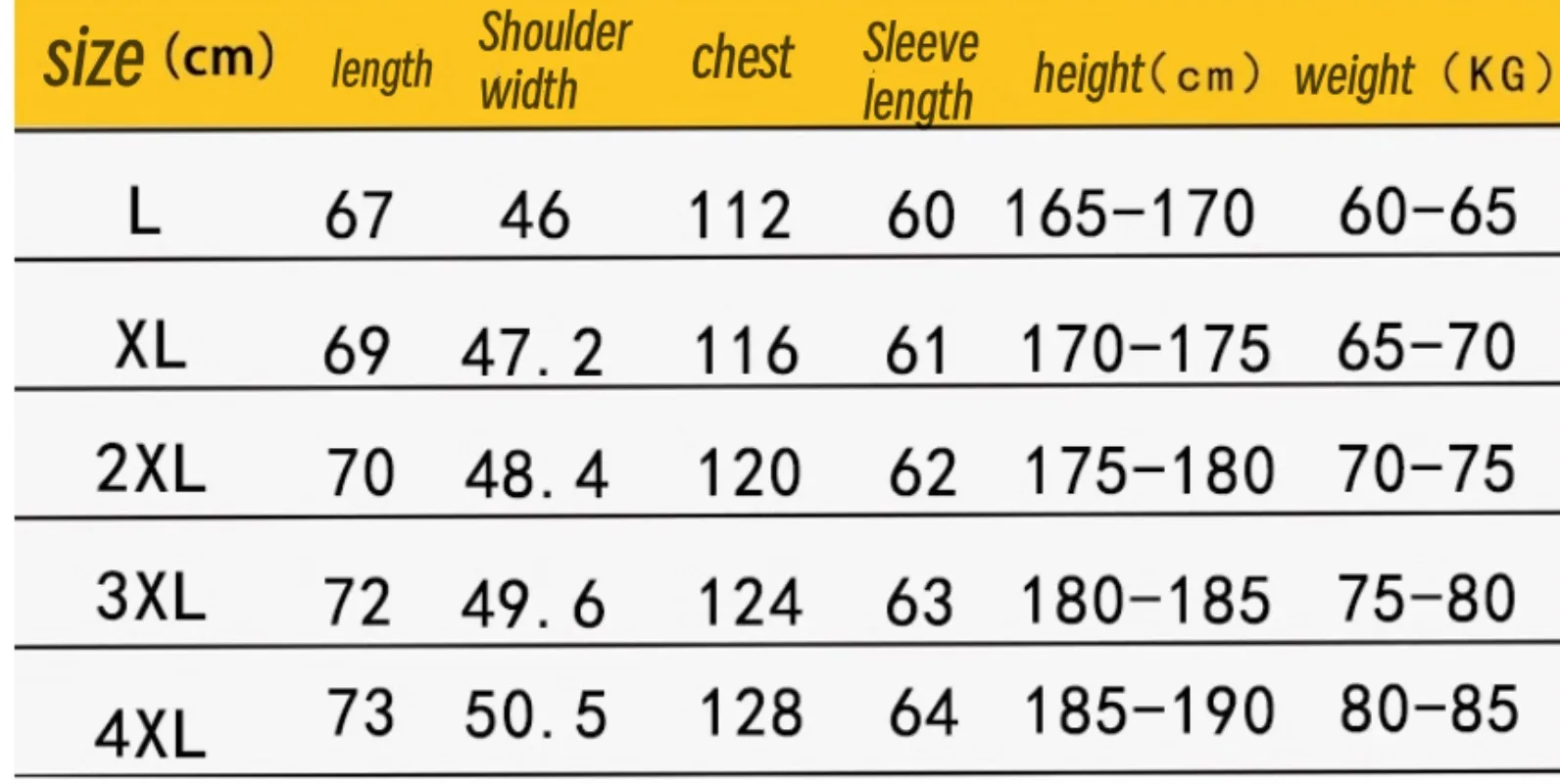 2XL: adecuado para una altura de 175-180 cm, peso de 70-75 kg