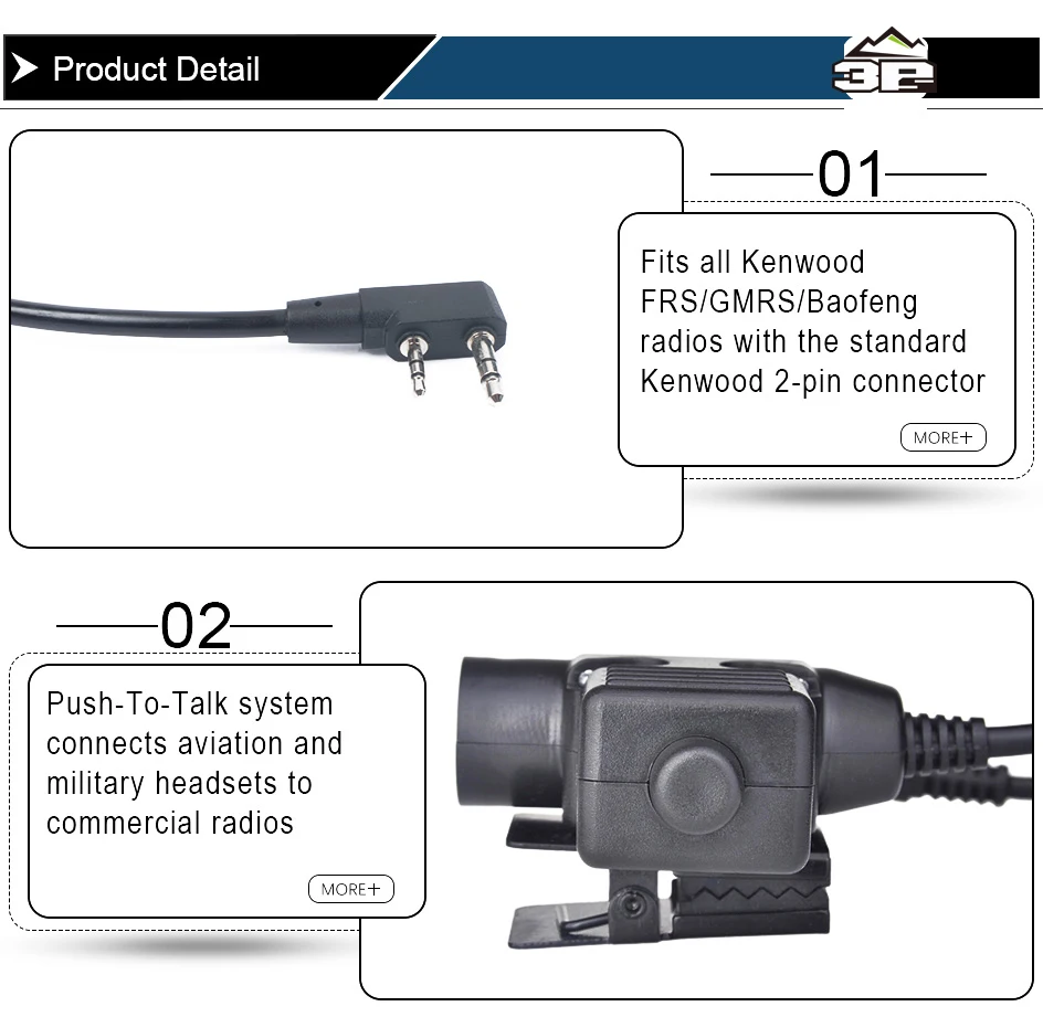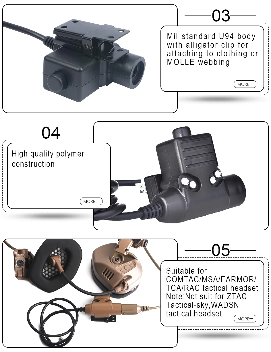 Nuevo adaptador de auriculares táctico militar U94 PTT Kenwood para Original RAC TMC COMTA Earmor caza Airsoft Cable enchufe