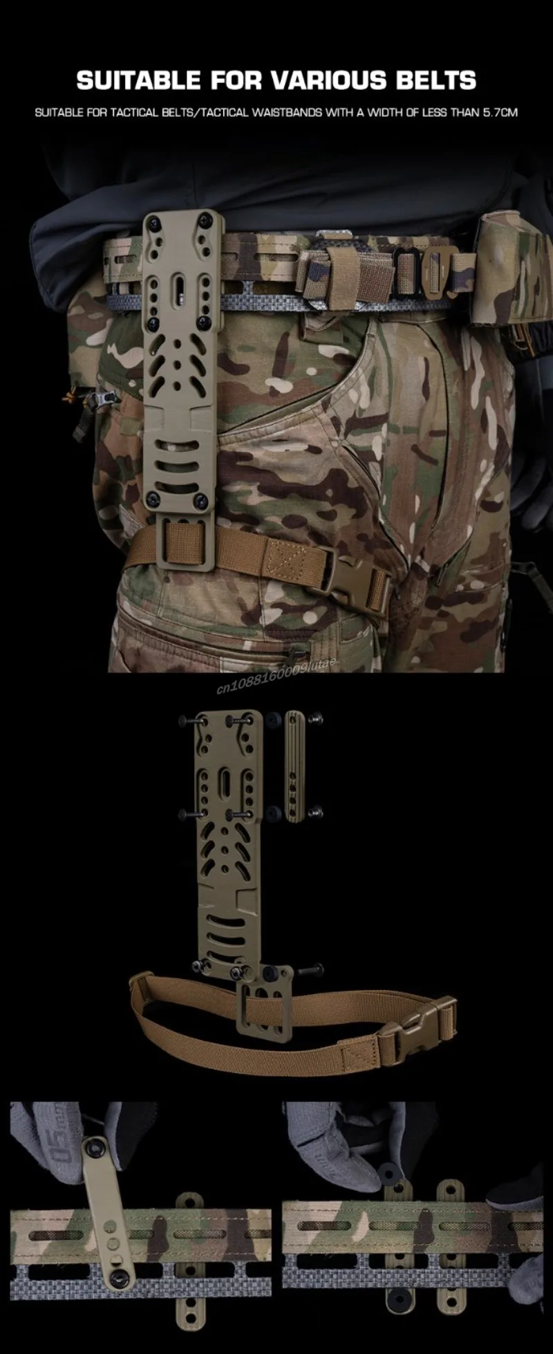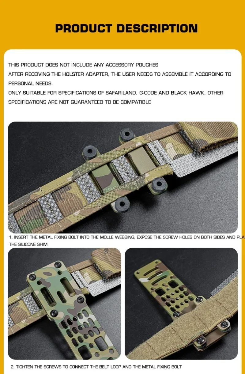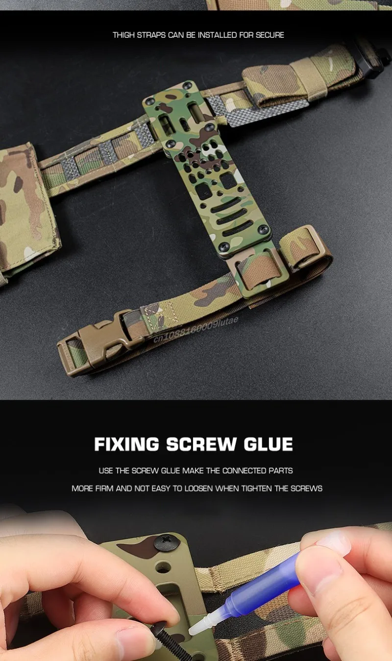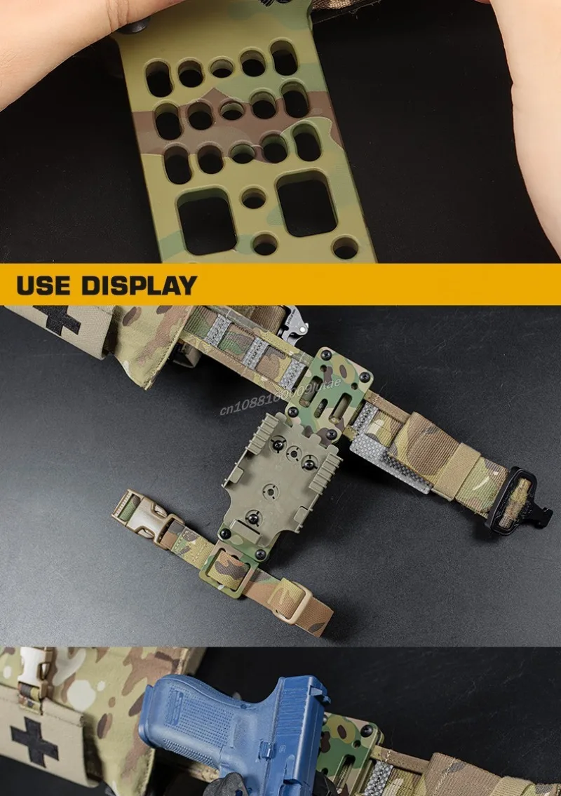 Tuve que volver a perforar el módulo de la correa del muslo, que no tenía el diámetro correcto, y perforar la placa de aluminio para adaptar mi equipo Blackhawk a ella, pero si haces un poco de trabajo de bricolaje, cumple su función. A este precio, no deberías esperar demasiado.