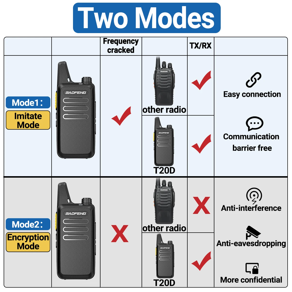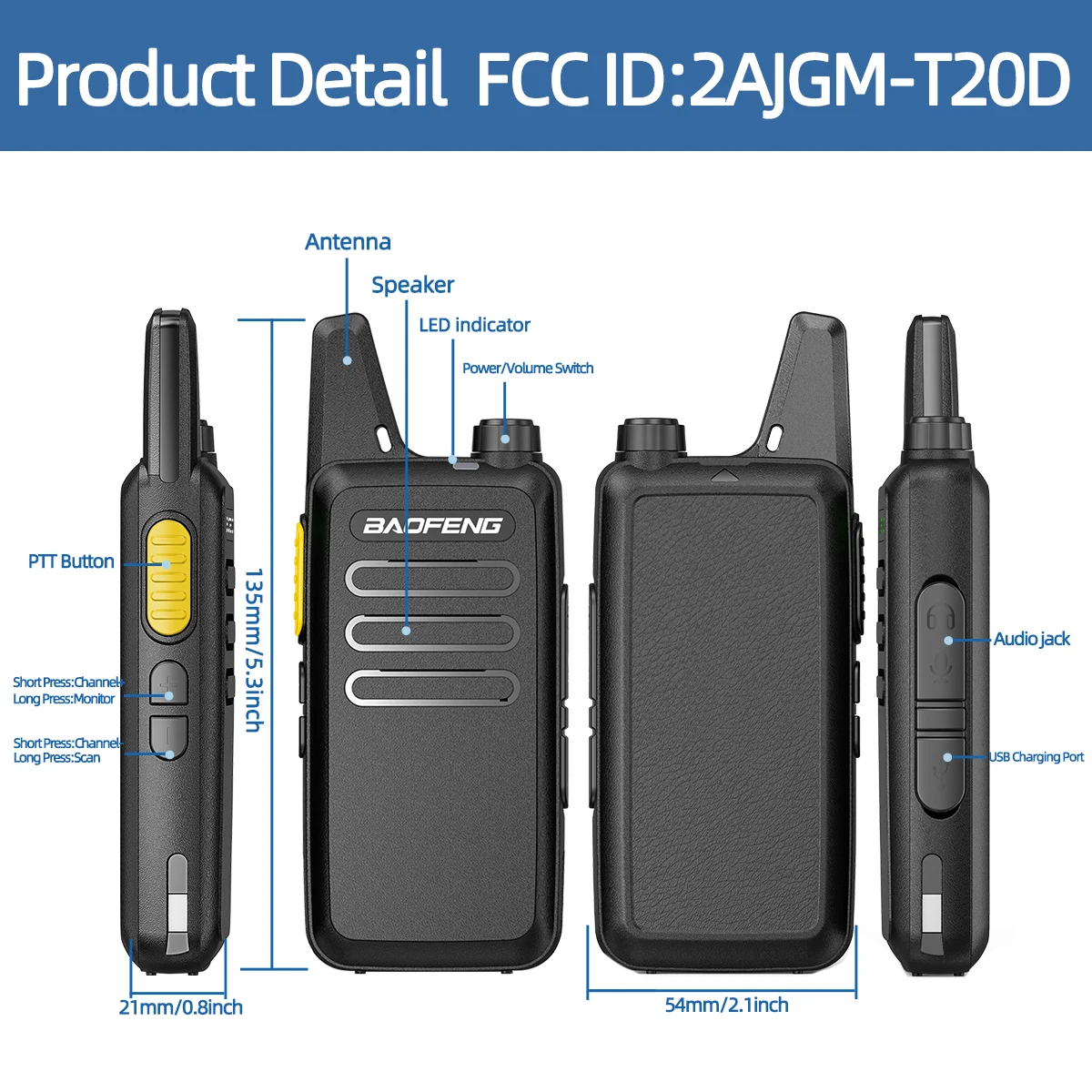 La radio Baofeng BF-T20D es pequeña y liviana, cuando está trabajando, puede brindarle más comodidad.