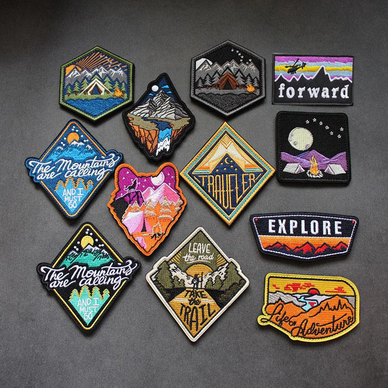 Nuevo brazalete escénico al aire libre todoterreno bordado 3D Camping montaña y río DIY costura moral parches de gancho y bucle