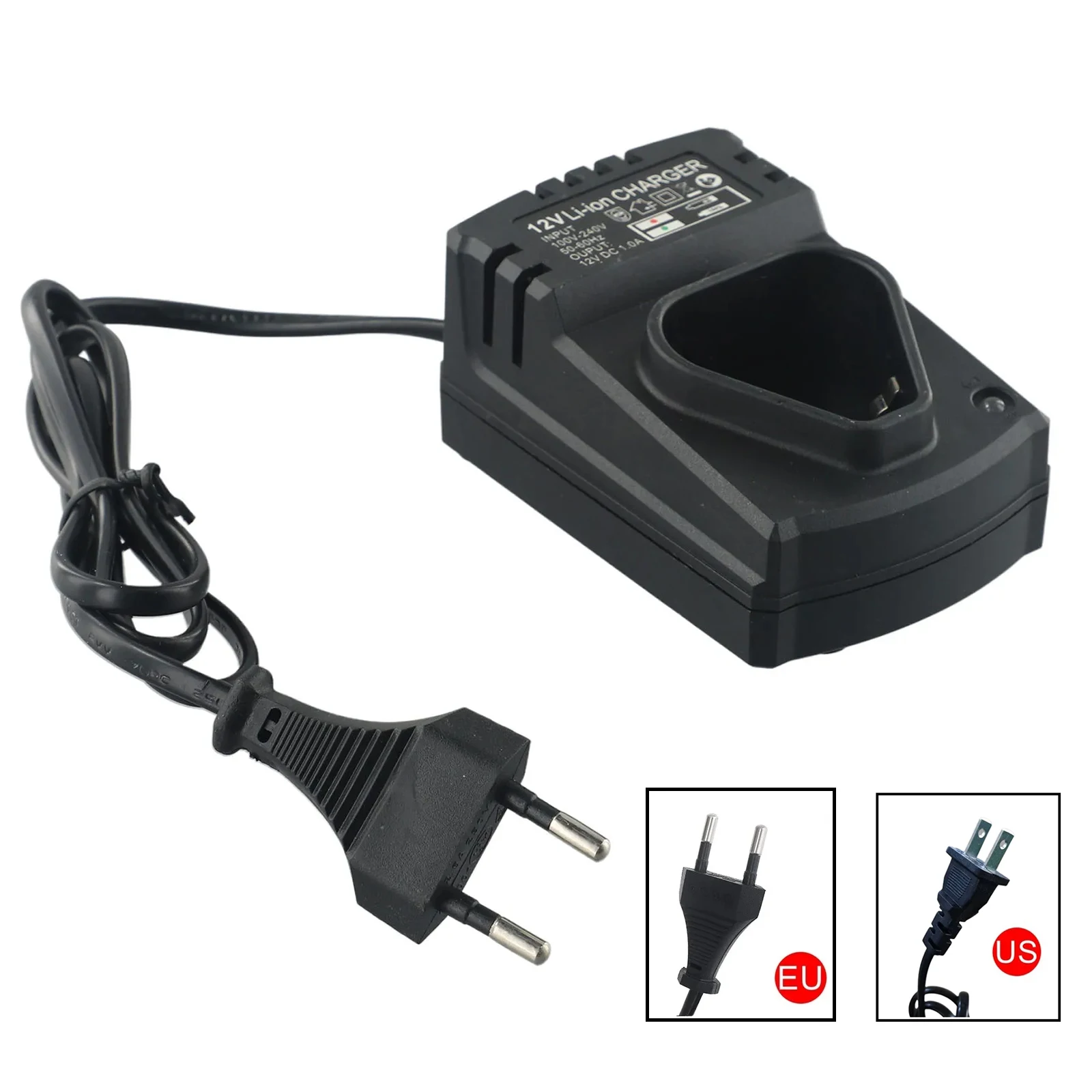 Cargador recargable de iones de litio de 12V CC para EE. UU./UE, soporte de PVC de 110-240V para taladro eléctrico, adaptador de destornillador de litio, 1 ud.