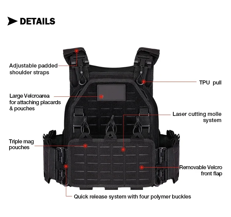 Nuevo Chaleco táctico de corte láser desmontable rápido 6094, equipo multifuncional