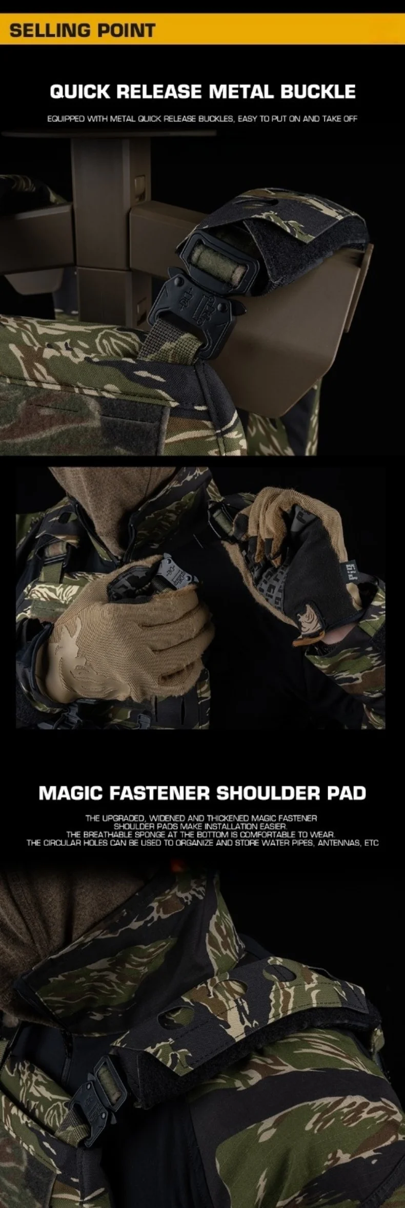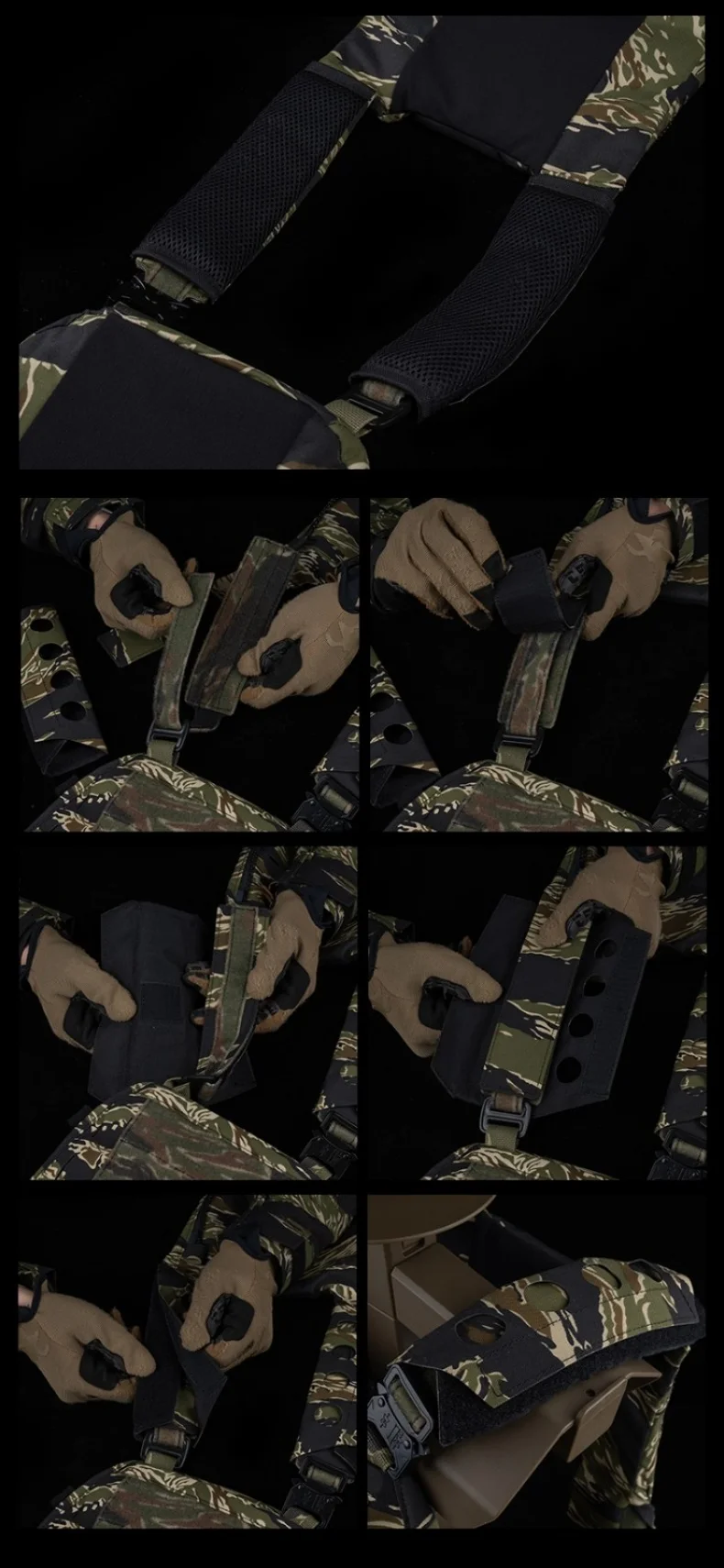 ※ El panel frontal se fija mediante hebillas G y Hook & Loop, lo que permite a los usuarios quitar e instalar fácilmente otros paneles tácticos.