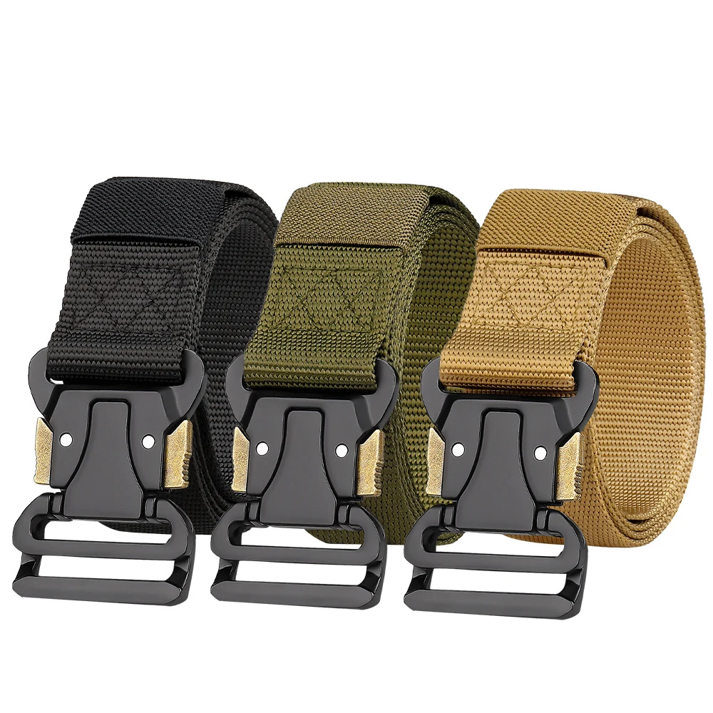 Nuevo Cinturón táctico para hombre, cinturón de trabajo informal tejido de poliéster, cinturón con hebilla rápida para exteriores