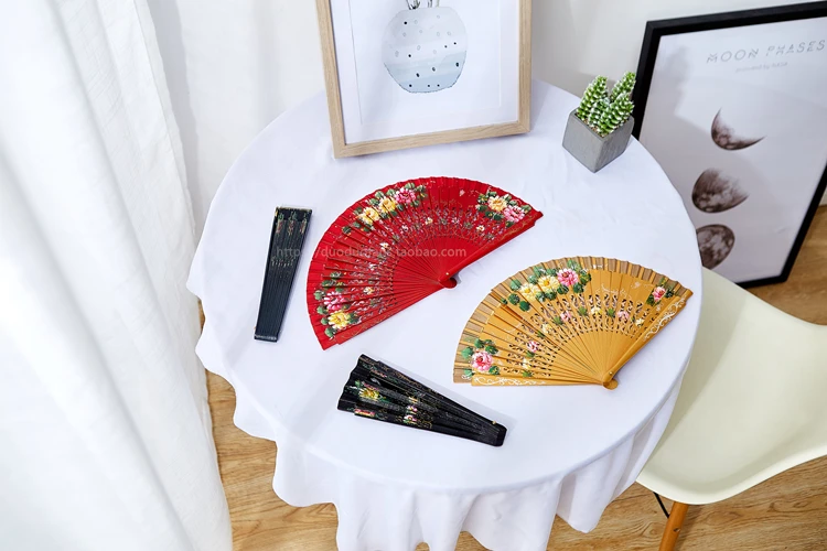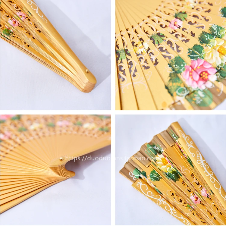 Nombre: Abanico de madera pintado a mano en español.
