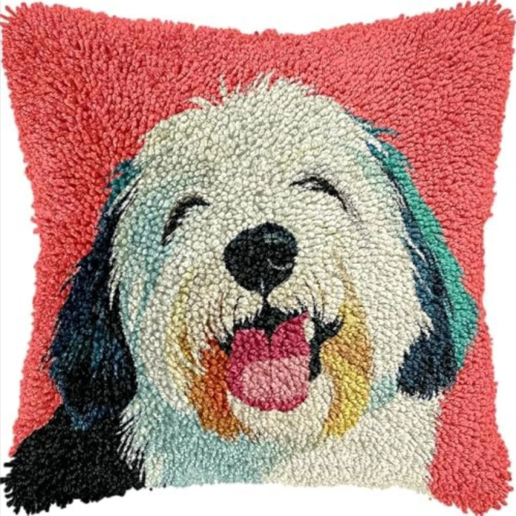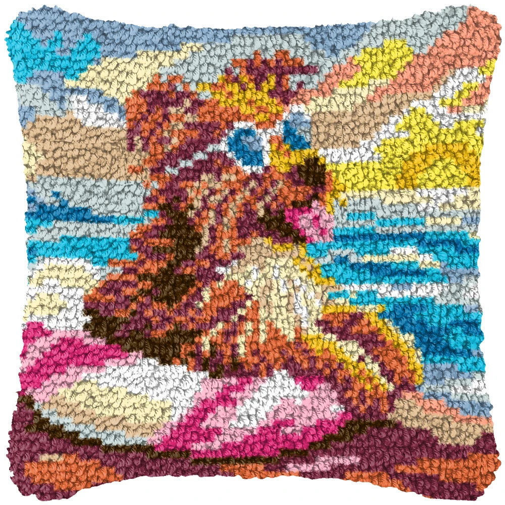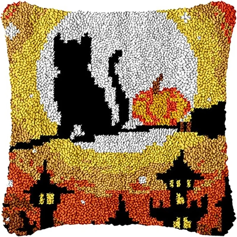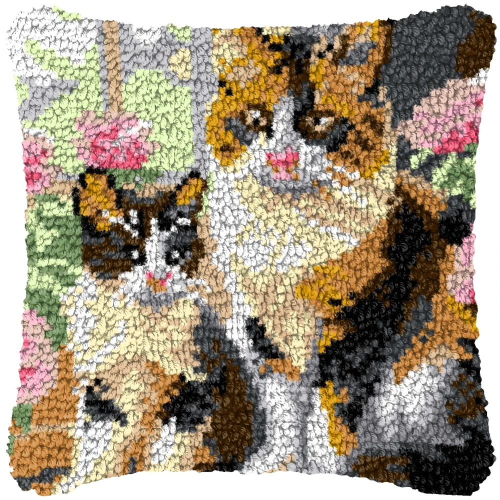 Nuevo diseño, Kits de alfombra con gancho de pestillo de gato rosa, Material bordado, tejido a mano, lindos animales, almohada bordada, gancho de pestillo, regalos