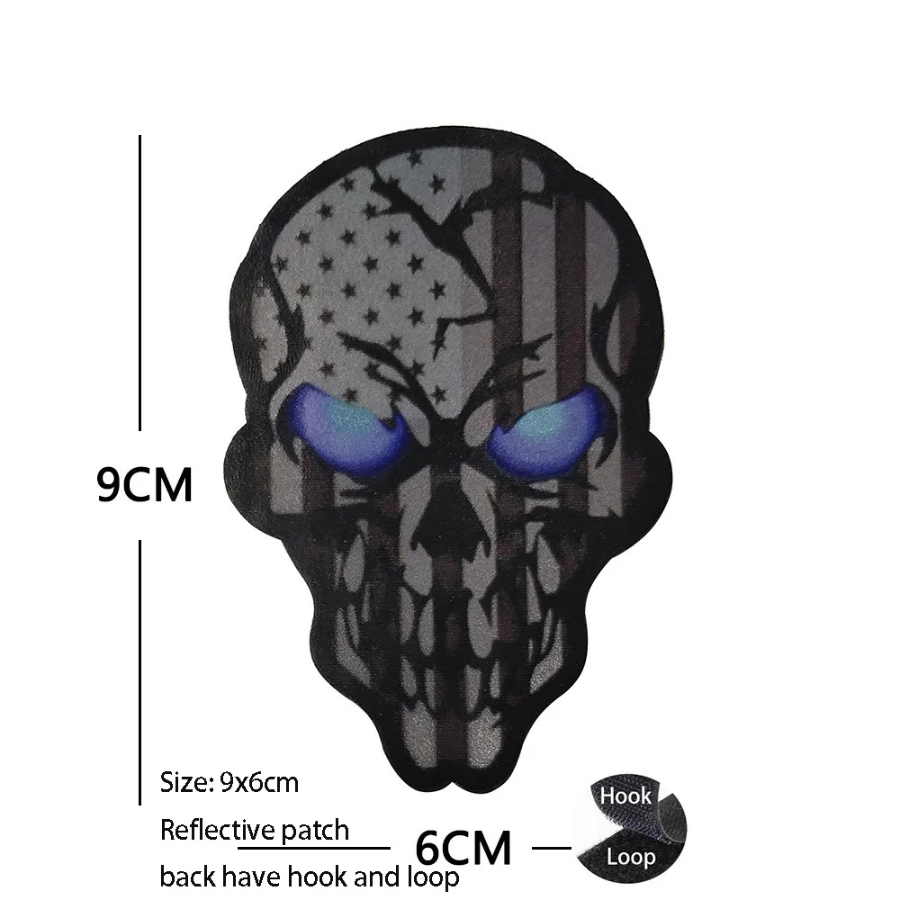 Diseño: brazalete reflectante de calavera con ojos azules oscuros de la bandera americana