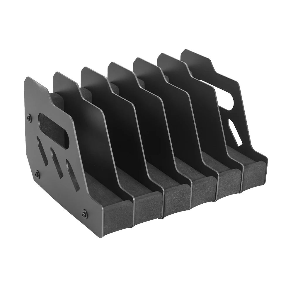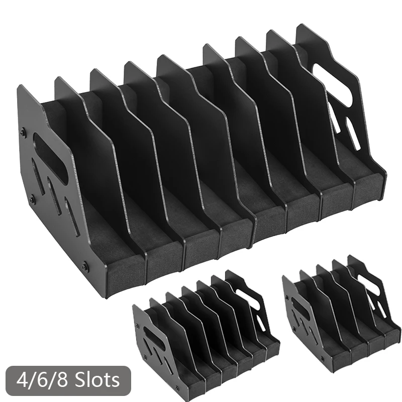-Each gun slot is 1.5” wide, most of the large pistols with accessories will fit in this rack without any issues. At the same time, the sturdy lightweight polymer board has better support capacity, so you don't have to worry about the gun frame falling apart when the gun is full.