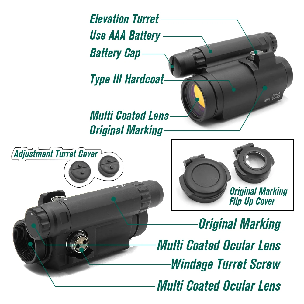 Nuevo EvolutionGear AIM Red Dot Sight táctico 5 estilos caza óptica con soportes 1,57/1,93 pulgadas con marcas completas