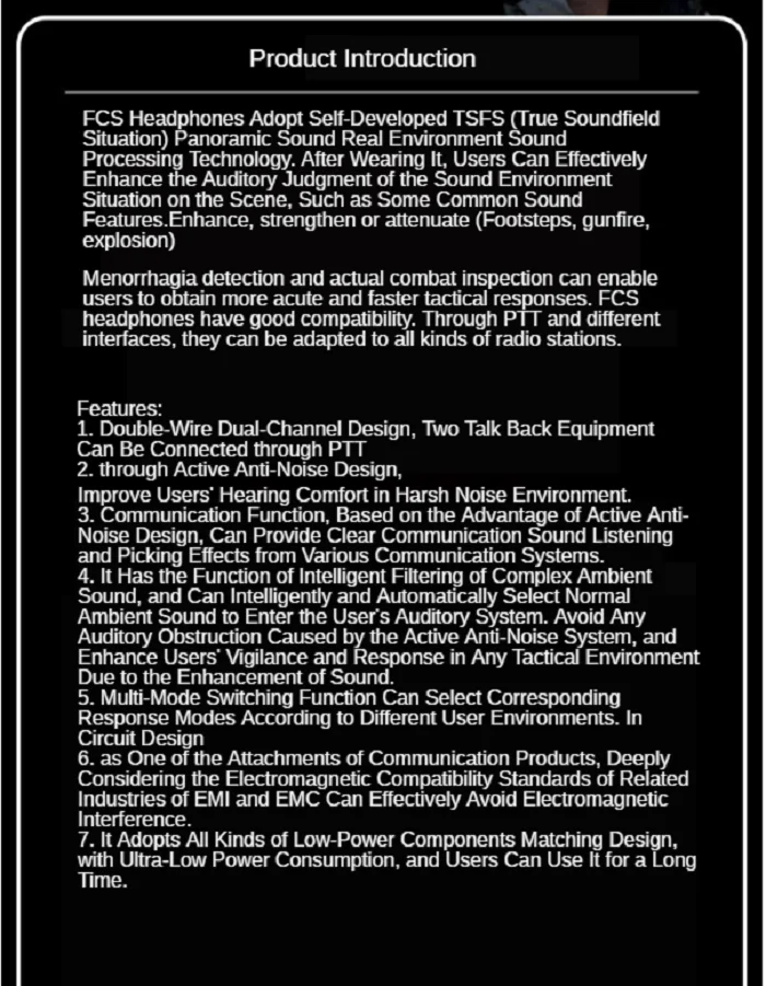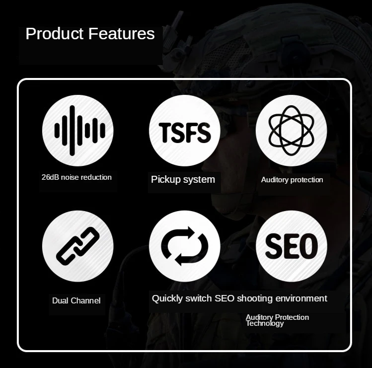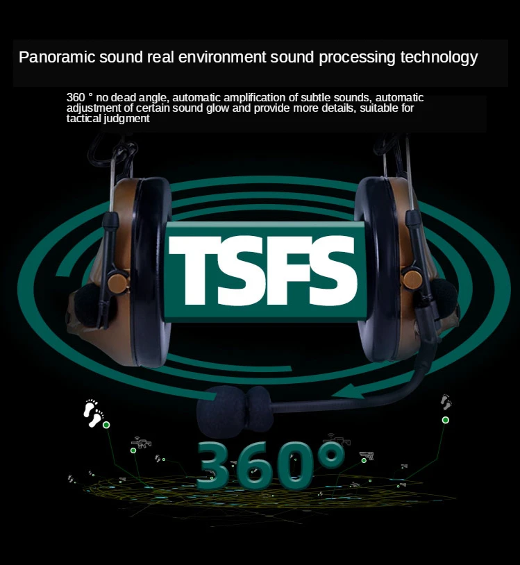 Puede mejorar eficazmente el juicio auditivo de la situación del entorno sonoro in situ y permitir a los usuarios obtener una respuesta táctica más nítida y rápida.Mejora la vigilancia y los reflejos del usuario en cualquier entorno táctico.