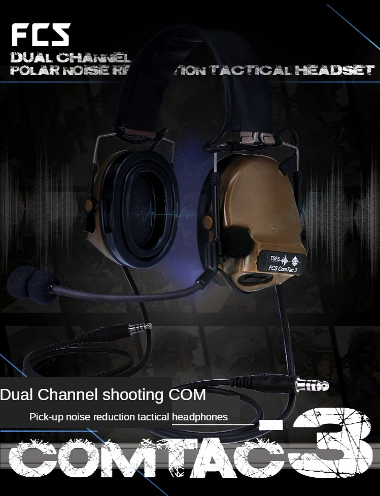Comtac3 C3 Auriculares de comunicación táctica con reducción de ruido y captación de doble canal