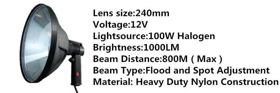 1*12V 240MM Halogen Hunting Spotlight( Not Included Battery )