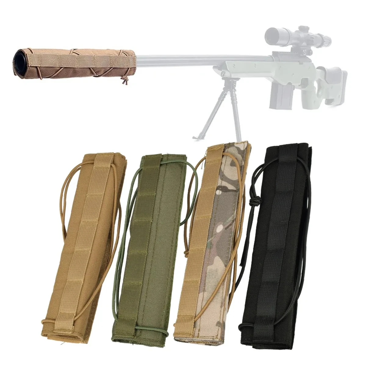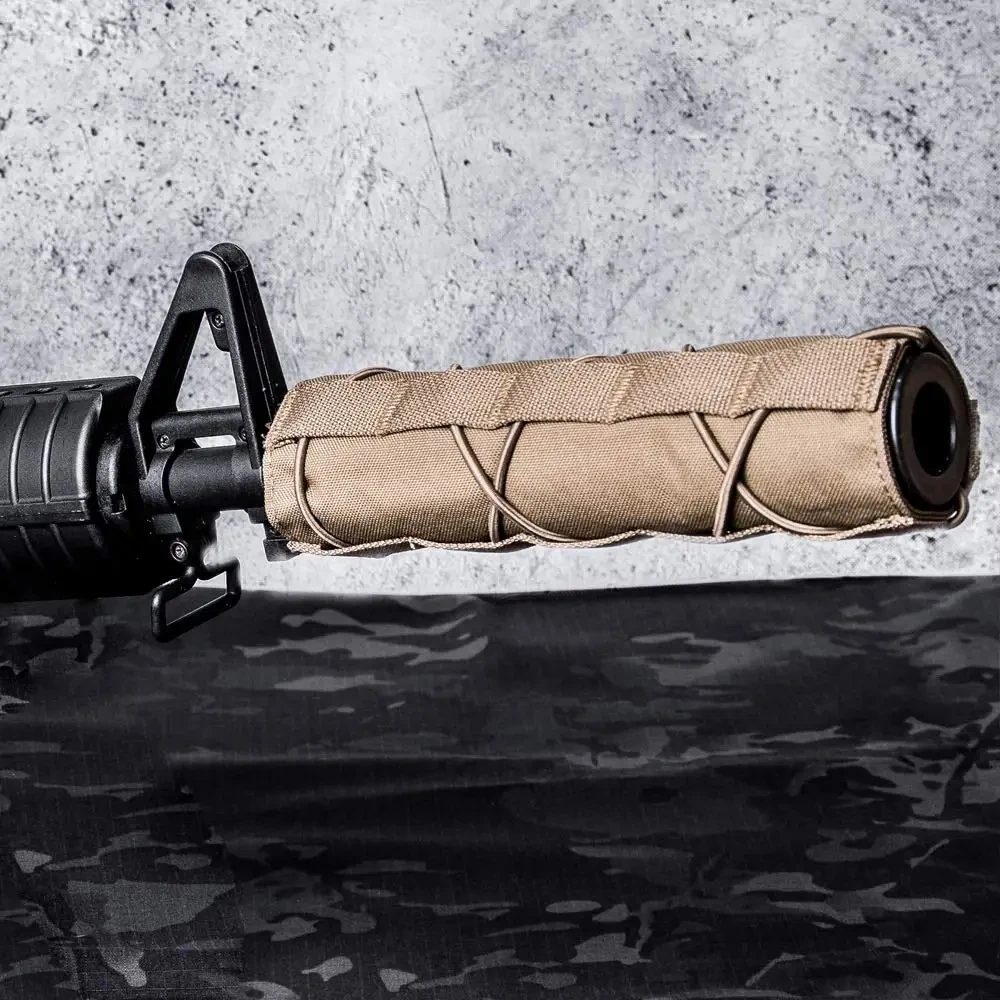 La funda Airsoft Suppressor está hecha de tela de nailon 500D superior con revestimiento resistente al agua, resiste el calor y la abrasión extremos.Un accesorio perfecto para cualquiera que quiera mantener un excelente camuflaje mientras se coloca.