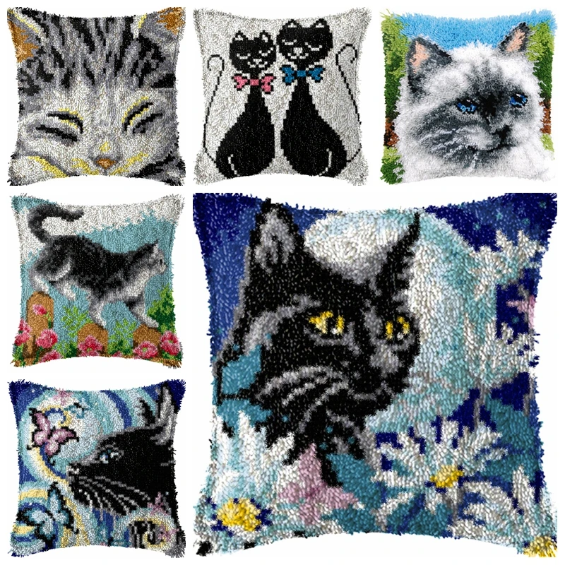 Nuevo Kit de alfombrilla con gancho de pestillo de la serie Cat Elephant, paquete de almohadilla de botón DIY, Smyrna klink haak, almohada bordada, knooppakket