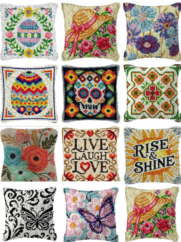 New Classic Datura Flower Latch Hook Set Embroidery Latch Hook Kit Butterfly Latch Hook Pillow Button Pad Package Handmade DIY